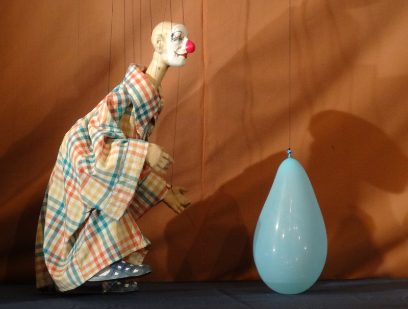 Wenn Ralf Herzog mit Holzpuppen auf einer kleinen Bühne posiert und schäkert, dann ist Fototermin, um die Neuigkeiten aus dem August Theater ordentlich zu bebildern und im Film festzuhalten. Heute war es wieder so weit. Während die Puppenspieler Randi und Grigorij Kästner-Kubsch verborgen durch den Vorhang zwei, drei oder gar vier Puppen gleichzeitig um den Pantomimen herumscharwänzeln ließen, zeigte Herzog den Fotografen die Vielfalt seiner Mimen-Minen.
