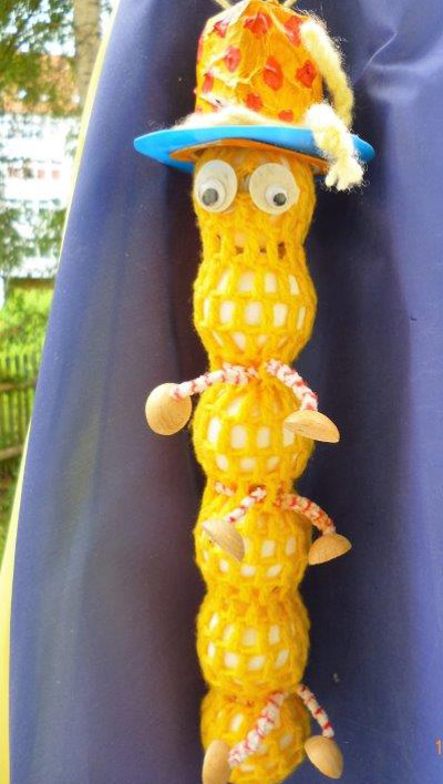 Seit zwei Jahren ist ein Bücherwurm bei jeder Lesestunde mit dabei. „Den lasse ich zu Beginn auf meinem Schoß immer herumzappeln“, erzählt Gerda Kočí. Die Kinder würden dann natürlich wissen wollen, warum der Bücherwurm nicht still sitzen kann. „Der ist genauso neugierig wie ihr. Er weiß nicht, welche Geschichte ich heute mitgebracht habe“, antwortet sie dann. Ein bemalter Joghurtbecher als Kopf, mit Wolle umhäkelte Tischtennisbälle als Rumpf und bunter Pfeifenreiniger mit kleinen Holzfüßchen am Ende als Beine – fertig war der Bücherwurm.