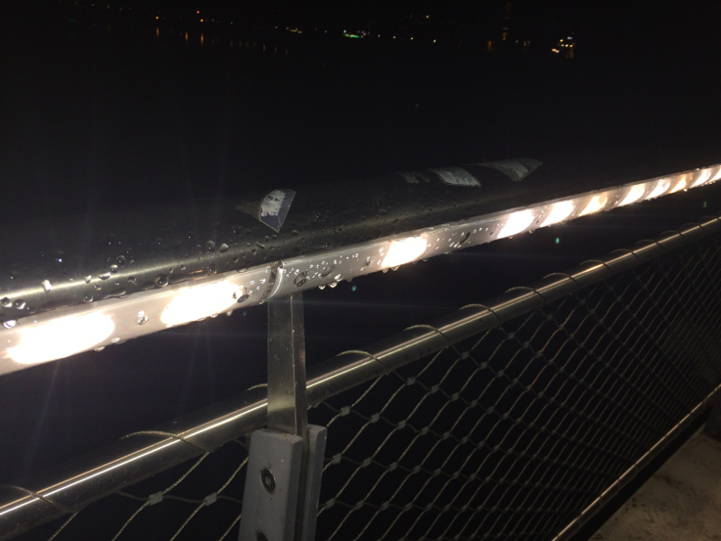 „Im Brückengeländer sind 87 Lichtleisten mit jeweils 12 einzelnen LED-Leuchten installiert. Von den insgesamt 1.044 LED´s sind derzeit 259 Stück ausgefallen“, erklärte Koettnitz. Ein Austausch der Lichtleisten würde aber erst dann erfolgen, wenn das Licht um mehr als 50 Prozent gemindert sei. Wer über die Brücke geht, kann sehen, dass einige der defekten LED’s noch glimmen, die meisten sind aber aus. Betroffen, so Koettnitz seien insgesamt 24 Lichtleisten. Zum Vergleich: Bei der Waldschlösschenbrücke sind 8.000 LED-Lampen in den Geländern verbaut worden, 12 Stück pro Meter. Weil es keine Gewährleistungsansprüche mehr an die Baufirma gibt, würden die Reparaturen für die Lampen an der Molenbrücke nach Haushaltslage entschieden. Offenbar gibt das Budget für 2016 die 16.800 Euro noch her.
