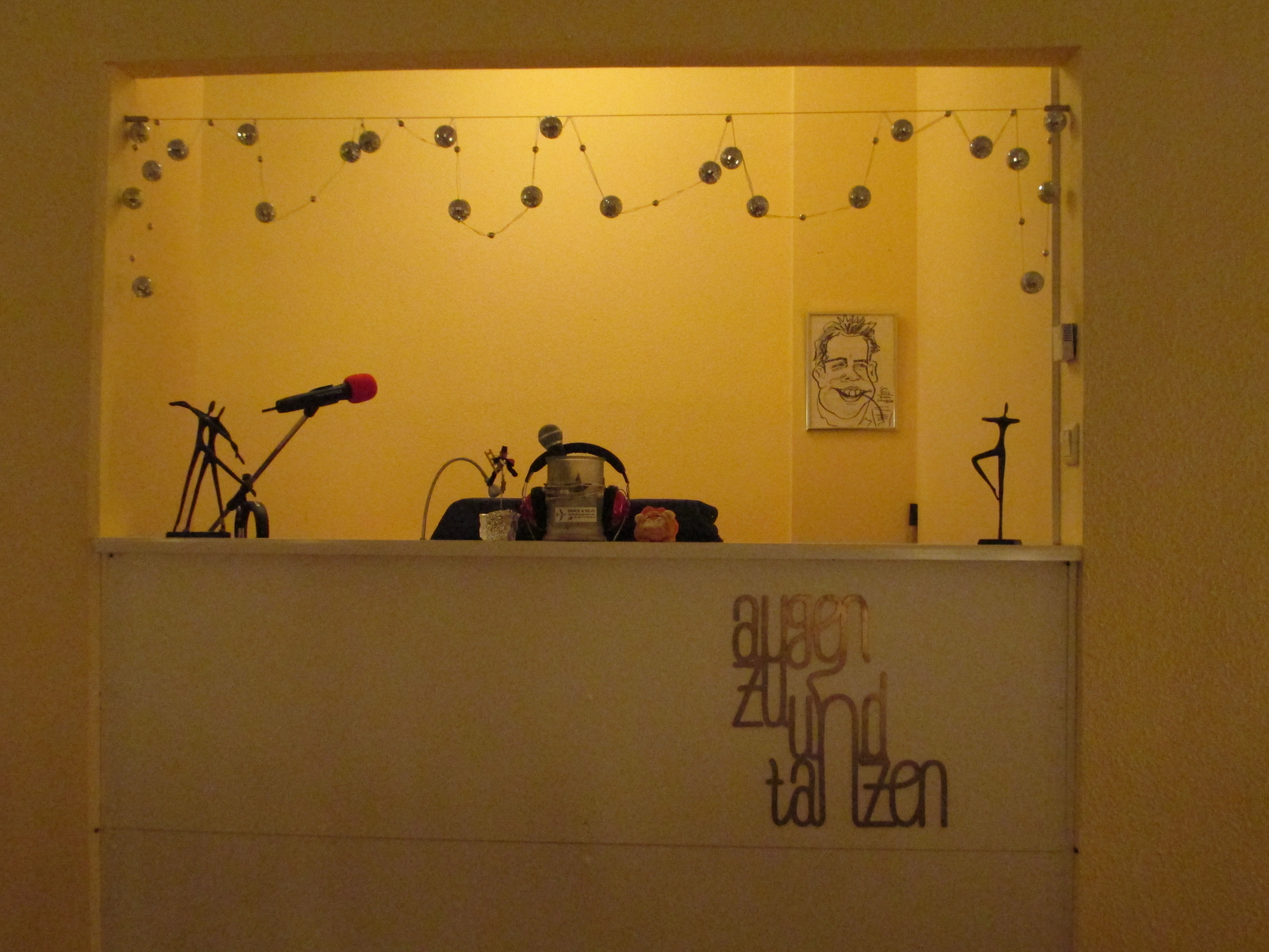 Es ist Nachmittag und schon winterlich dunkel. Umso festlicher wirkt der in Cremefarben gehaltene Tanzsaal der Scheidings. Ein großer Spiegel verkleidet die dem Fenster gegenüber liegende Wand. Dankeskarten und Fotos künden von Hochzeitspaaren, die mit Hilfe der Scheidings ihren Festtagstanz mit Bravour gemeistert haben. An einem der langen, weiß gedeckten Tische im linken Teil des Saales lädt Herr Scheiding zum Gespräch. Abends und am Wochenende sind diese Plätze den Gästen der Tanzpartys vorbehalten, die zwischen Discofox, Bachata und Co. bei einem Getränk verschnaufen wollen. Dann wird aus dem Tanzlehrer der DJ am Pult mit den Plattentellern. „Wir haben die Musikanlage so installieren lassen, dass man sich an den Tischen angenehm unterhalten kann“, erklärt Scheiding stolz.