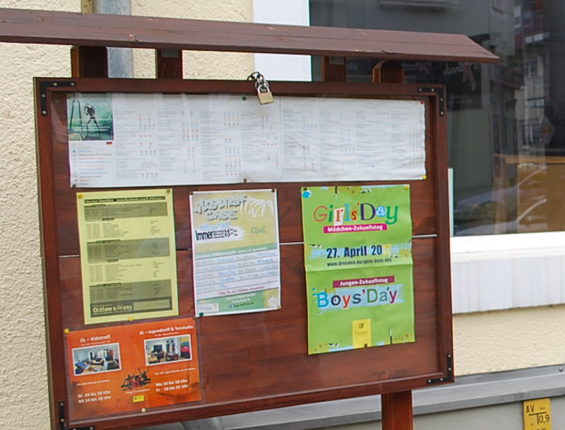 Vor dem Büro in der Herbststraße 15 informieren Aushänge über die nächsten Aktivitäten. Foto: C. Trache