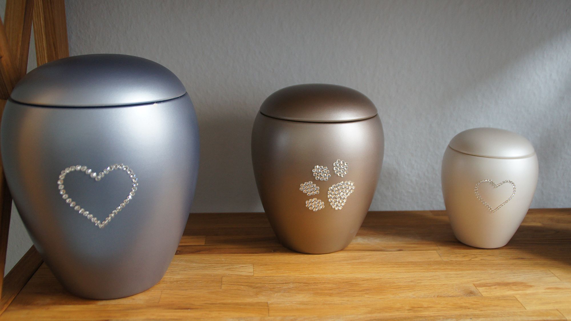 „Beliebt sind Modelle, denen man ihre Funktion nicht ansieht“, erklärt Frau Döring. Eine Katzenstatuette zum Beispiel oder herzförmige Gefäße aus Keramik. In Empfang nimmt Döring Kleintiere jeglicher Art – von der Maus bis zum Leguan. Auch Pferde können mit dem entsprechenden Aufwand würdig beigesetzt werden. Ist Tierbestatterin für eine Tierfreundin kein sehr widersprüchlicher Beruf? „Es klingt seltsam, ja. Aber ich habe selbst seit vielen Jahren Hunde und Katzen und musste mich oft schon verabschieden. Freude und Leid liegen sehr eng beieinander. Mir gibt Kraft, wenn ich sehe, dass die Trauernden dankbar und getröstet sind durch meine Arbeit.“