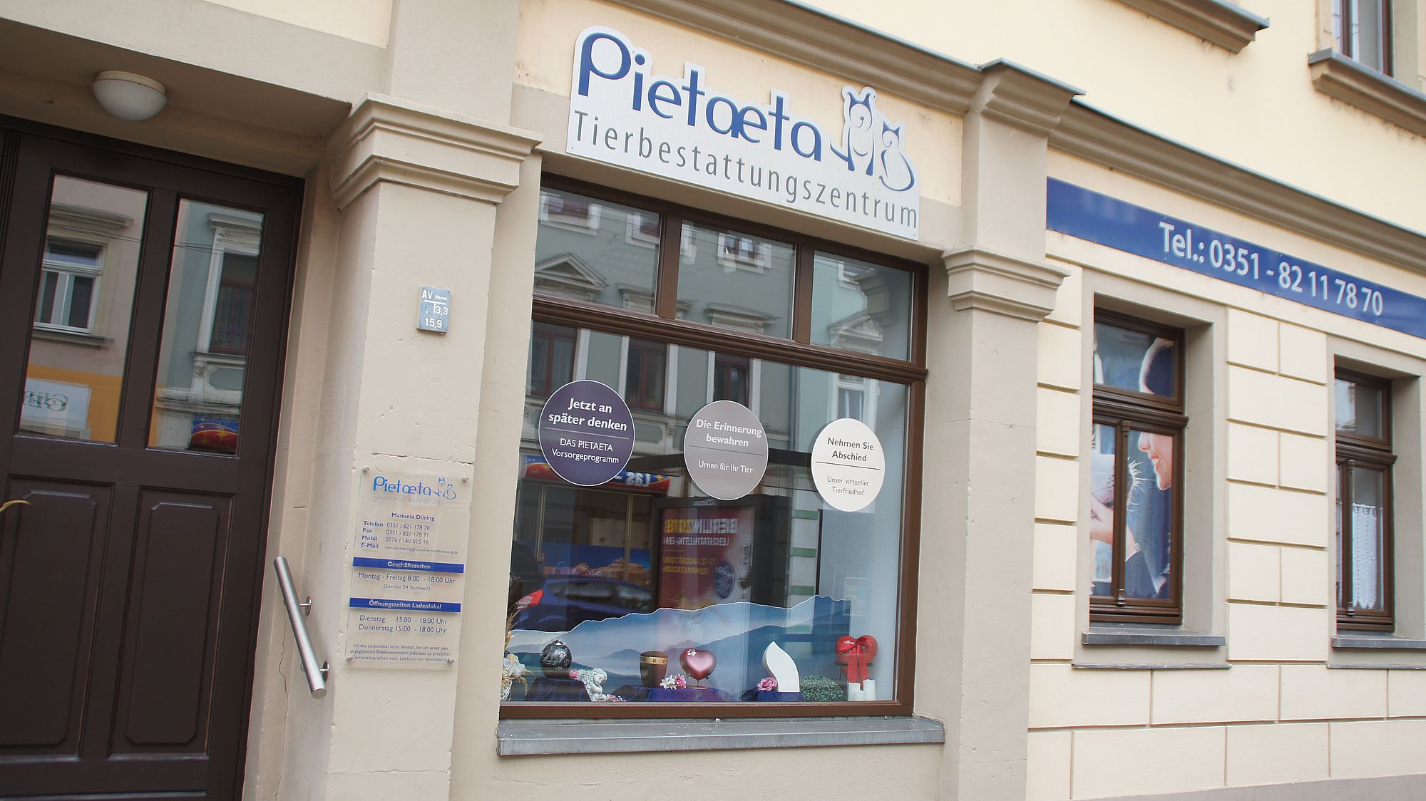 Vor nunmehr vier Jahren eröffnete sie die Filiale auf der Bürgerstraße. An den Job kam die gelernte Marketingassistentin sehr modern – über Facebook. Im Jahr 2011 wechselte sie von einem Pharmaunternehmen zum Tierkrematorium Rosengarten. Nach ihrer Kündigung dort hinterließ sie einen dankbaren Abschiedsgruß in der Chronik, den just Pietaeta entdeckte und sie anwarb. Ihr wurde die alleinige Verantwortung für den neuen Standort Dresden übertragen. Sie ist zwar Angestellte, kann jedoch frei schalten und walten. So gestaltete sie den Innenraum nach ihren eigenen Entwürfen.