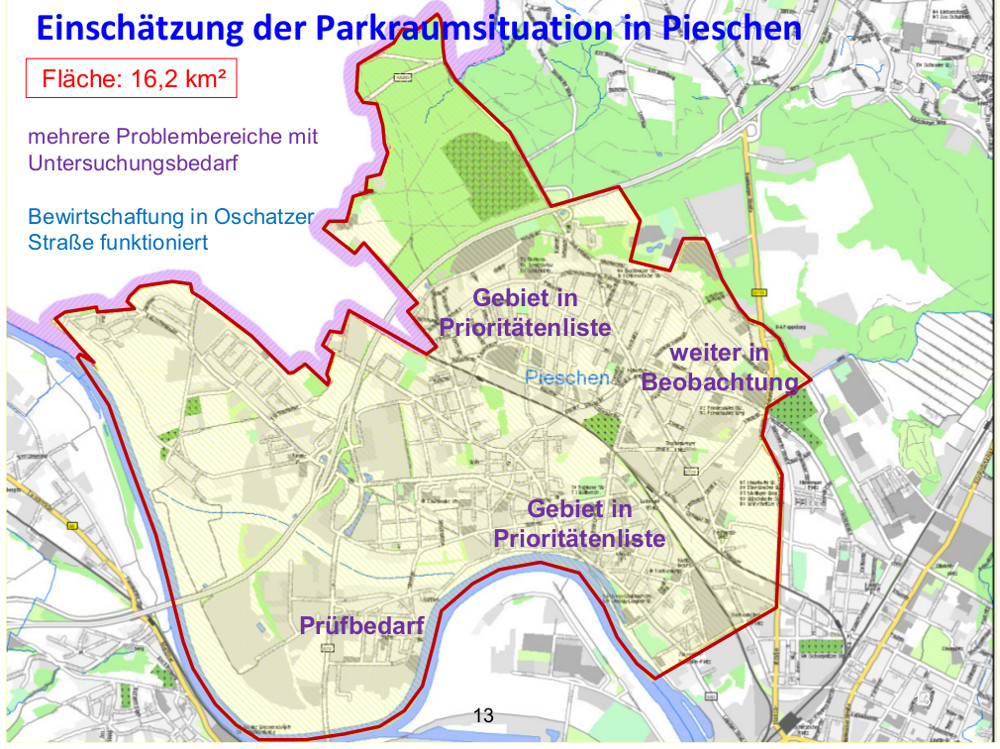 Was Pieschen fehlt sind Grünanlagen und keine zusätzlichen Parkplätze. Ich fände es sinnvoller, dieses Stück Straße in die angrenzende Parkanlage zu integrieren und das Parken vor den Pollern auf der Seite der Schule zu unterbinden, um den Fußgängern und Radfahrern das Durchkommen zu erleichtern.
