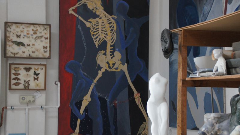 Je nach Stimmung und Inspiration wechselt die Künstlerin von einer Wirkungsstätte zur anderen. Es gibt Tage, sagt sie, da sei ihr nicht nach Staub und Dreck und sie tobe sich lieber an der Staffelei aus. Früher, erzählt sie, war sie täglich bis zu acht Stunden ‚am Stein‘. Heute sind es an die vier, circa die Hälfte Ihres Arbeitstages. „Ich bin gelassener geworden. Aber du musst Disziplin haben. Du musst dich ransetzen. Der Kuss der Muse ist eine Hobby-Vorstellung.“
