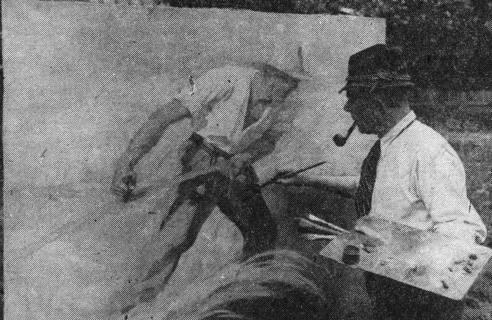 Willy Waldapfel vor seiner Staffelei in Wetter. Foto: „Marburger Presse“, 1. Oktober 1949, Archiv Brendler