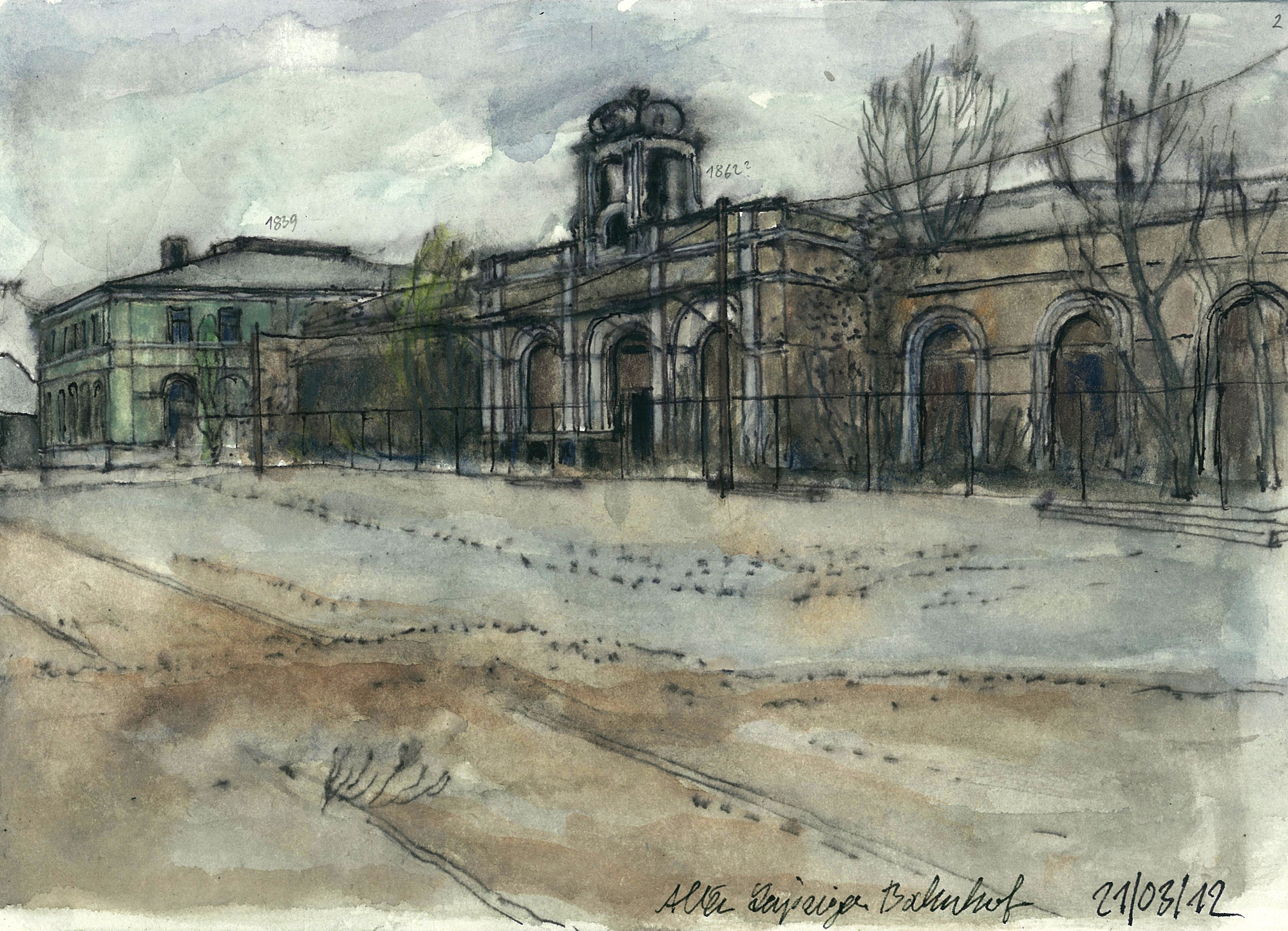 Fünf Jahre später malte Christian Helms das alte Empfangsgebäude noch einmal und wählte dafür eine andere Perspektive.