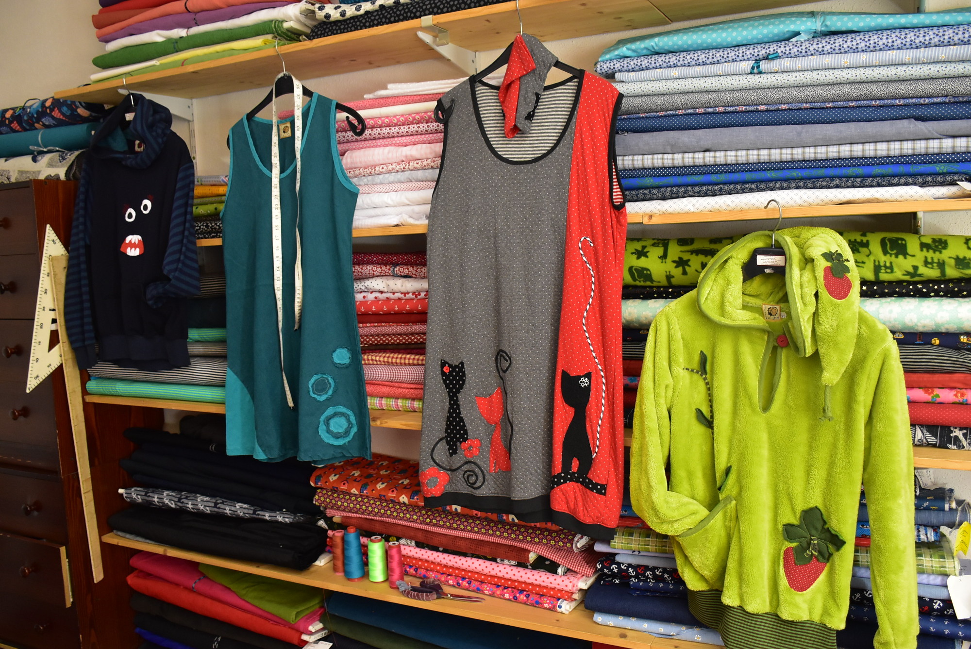 Neue Stücke für den Laden werden nicht mehr dazu kommen. Dafür haben sie und ihre Mitarbeiterin gar keine Zeit mehr. „Seit unsere Stammkunden wissen, dass wir schließen, geben sie jede Menge Bestellungen auf, wollen zum Teil bis zu fünf Teile von uns genäht haben“, erzählt Yvonne Geffarth und freut sich darüber, auf dem Höhepunkt ihres Geschäftslebens aufhören zu können.