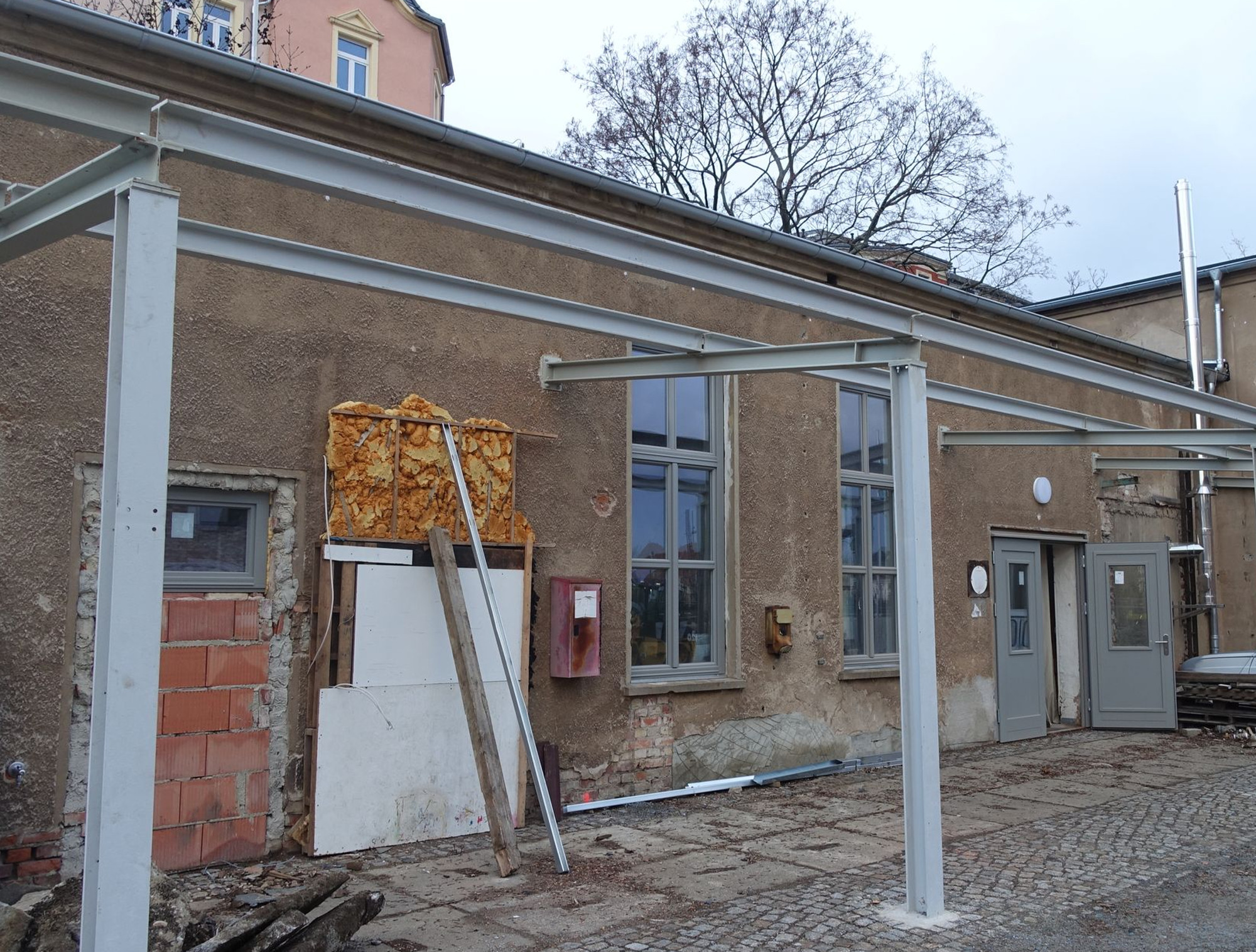 Ein wichtiges Projekt ist der Umbau eines Ateliers zu einem Café mit Biergarten im Außenbereich. Daneben werden in einem ehemaligen Heizungsraum Toiletten eingebaut. Ab Mai, so hofft Elsner, können sich hier Anwohner, Schüler, Lehrer oder Eltern zum Plausch treffen, auch mit den Künstlern. Die neuen Toiletten werden sicher auch die künftigen Besucher auf dem Grünzug Gehestraße zu schätzen wissen.