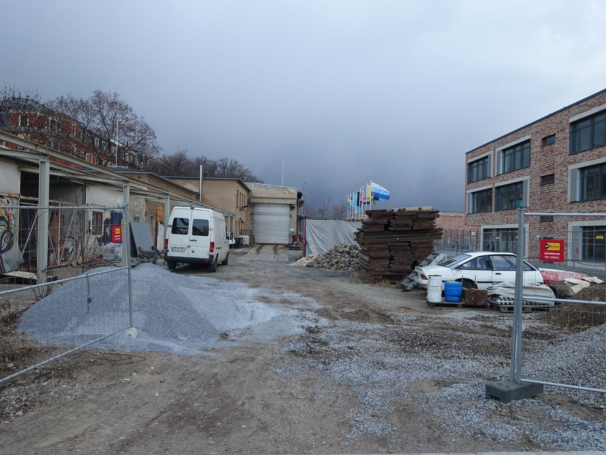 Das Wrack eines Opel Manta verschaffte den Künstlern des Vereins „GEH8 Kunstraum und Ateliers“ im Januar viel Aufmerksamkeit. Eigentlich ging es aber um Flaggen. Und um die Gestaltung einer ansprechenden Verbindung zwischen dem Areal des Vereins und dem benachbarten Schulcampus Gehestraße. Ein halbrunder Platz, Mauerelemente als Abgrenzung und Sitzgelegenheiten sollen entstehen. Und ein neuer Zugang zum GEH8-Gebäude, auf dem ein roter Teppich für die Besucher ausgerollt wird.