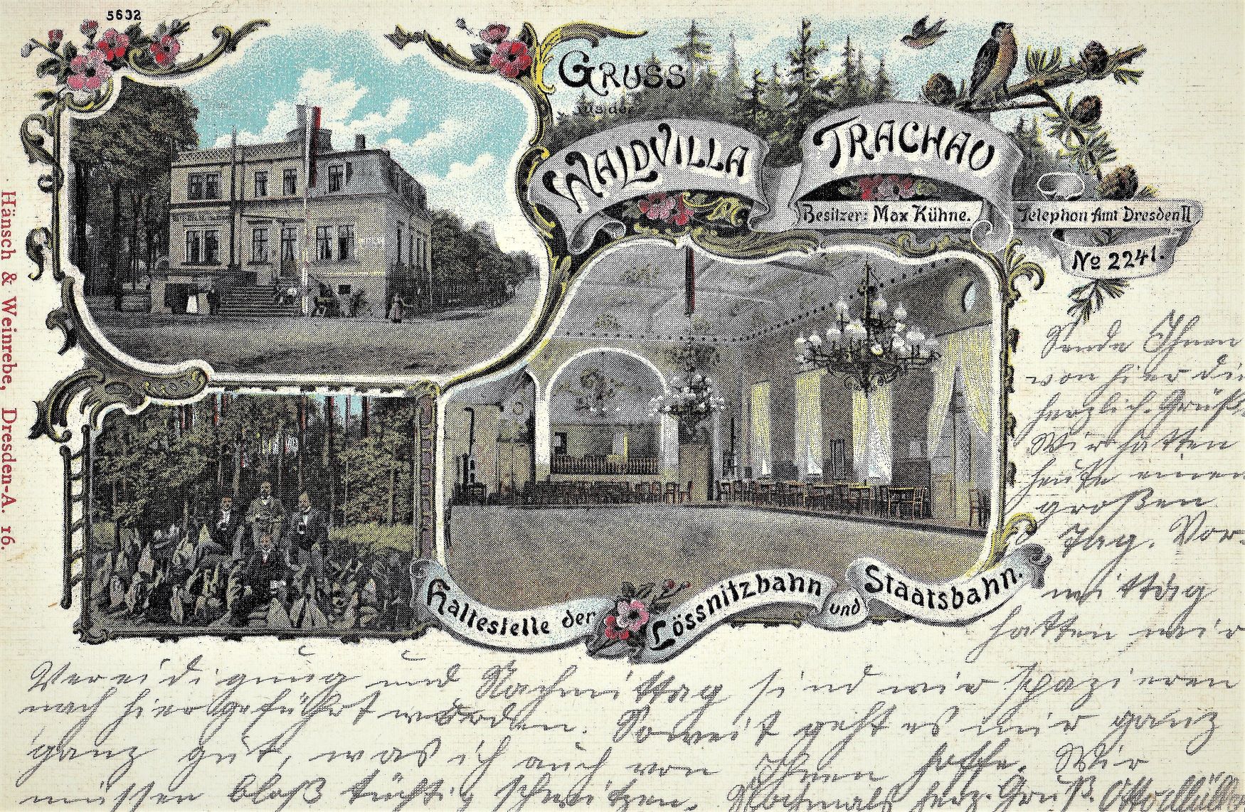 „Endlich hat auch der an der Leipziger Chaussee gelegene sehr alte Trachauer Gasthof einem neuen, der Jetztzeit entsprechenden Gebäude Platz gemacht. Der Wirt des Gasthofes hatte gestern seinen Einzugsschmaus abgehalten. Der durch den großen Speisesaal und Nebenstuben erweiterte Tanzsaal sowie im Sommer der große schattige Garten mit Kegelbahn werden dem neuen Etablissement gewiss viele hungrige, durstige und tanzlustige Spaziergänger zuführen.“