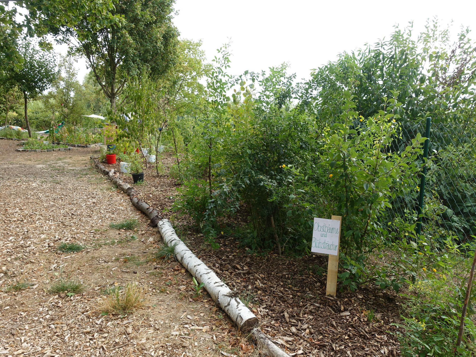 Der Gemeinschaftsgarten bietet viele Möglichkeiten, um aktiv zu werden. Auf den urbar gemachten Flächen werden Gemüse, Kräuter, Blumen und Obst angebaut. Hochbeete, ein Recycling-Gewächshaus, Komposthaufen und Material für Kastenbeete oder Gärtnern in Säcken stehen zur Verfügung. Es gibt eine Feuerstelle und einen selbstgezimmerten, gut gefüllten Holzschober. Eine Balancierstrecke, Sandkasten, Kletterbäume und viel Platz machen den Ort für Eltern und Kinder besonders attraktiv. Monatliche Planungstreffs organisieren das Gartenjahr. Von März bis November gibt es feste Gartenzeiten.
