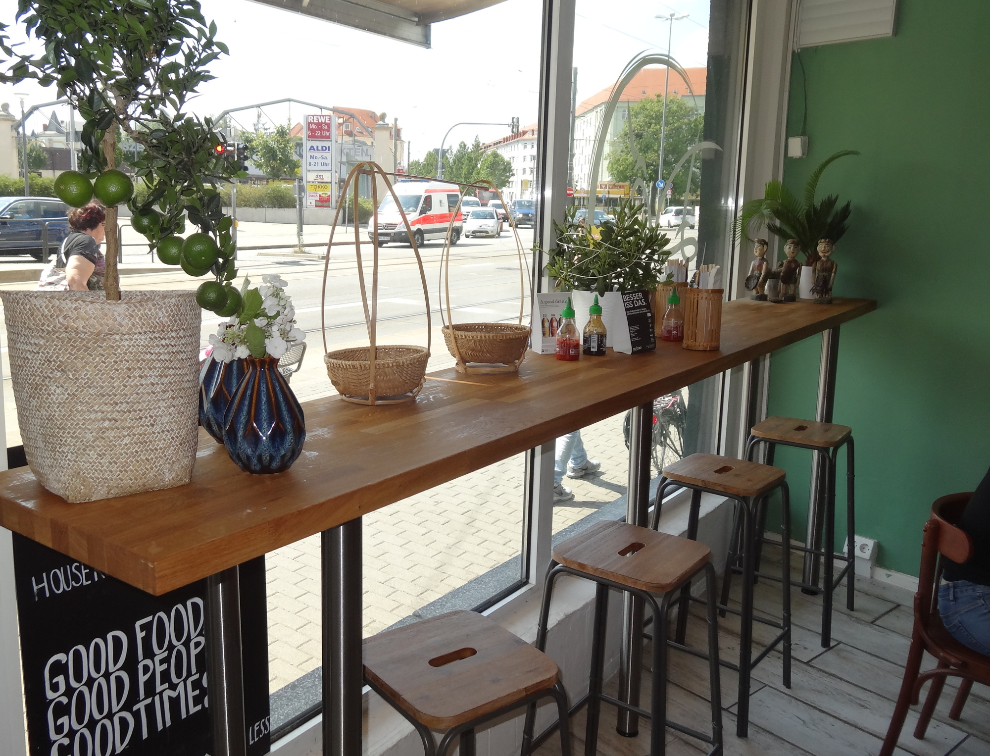 Die Plätze am Fenster im Bistro „Street Food Vietnam“ werden reduziert. Foto: W. Schenk