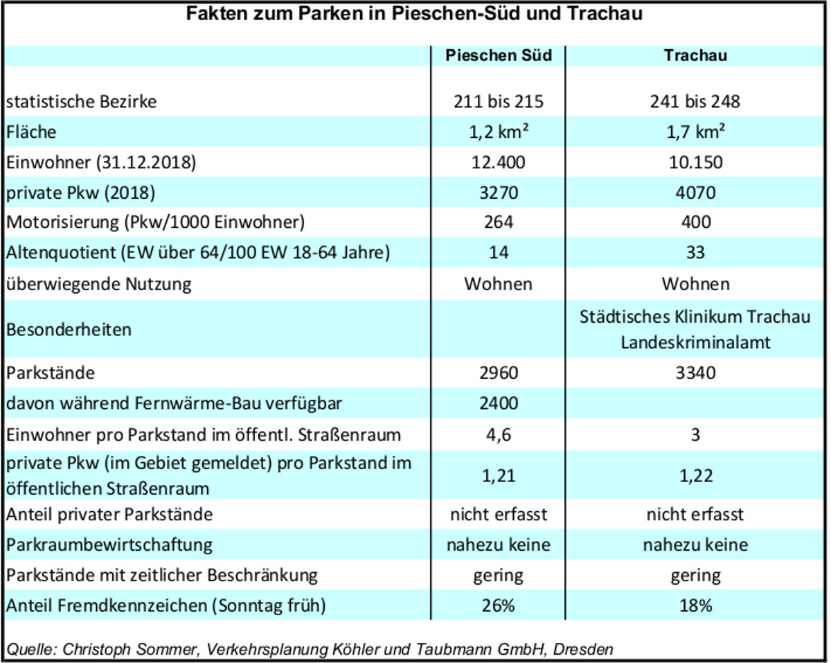 Die Fakten, die dabei für Pieschen-Süd und Trachau ermittelt wurden, sind in der folgende Tabelle zusammengefasst.