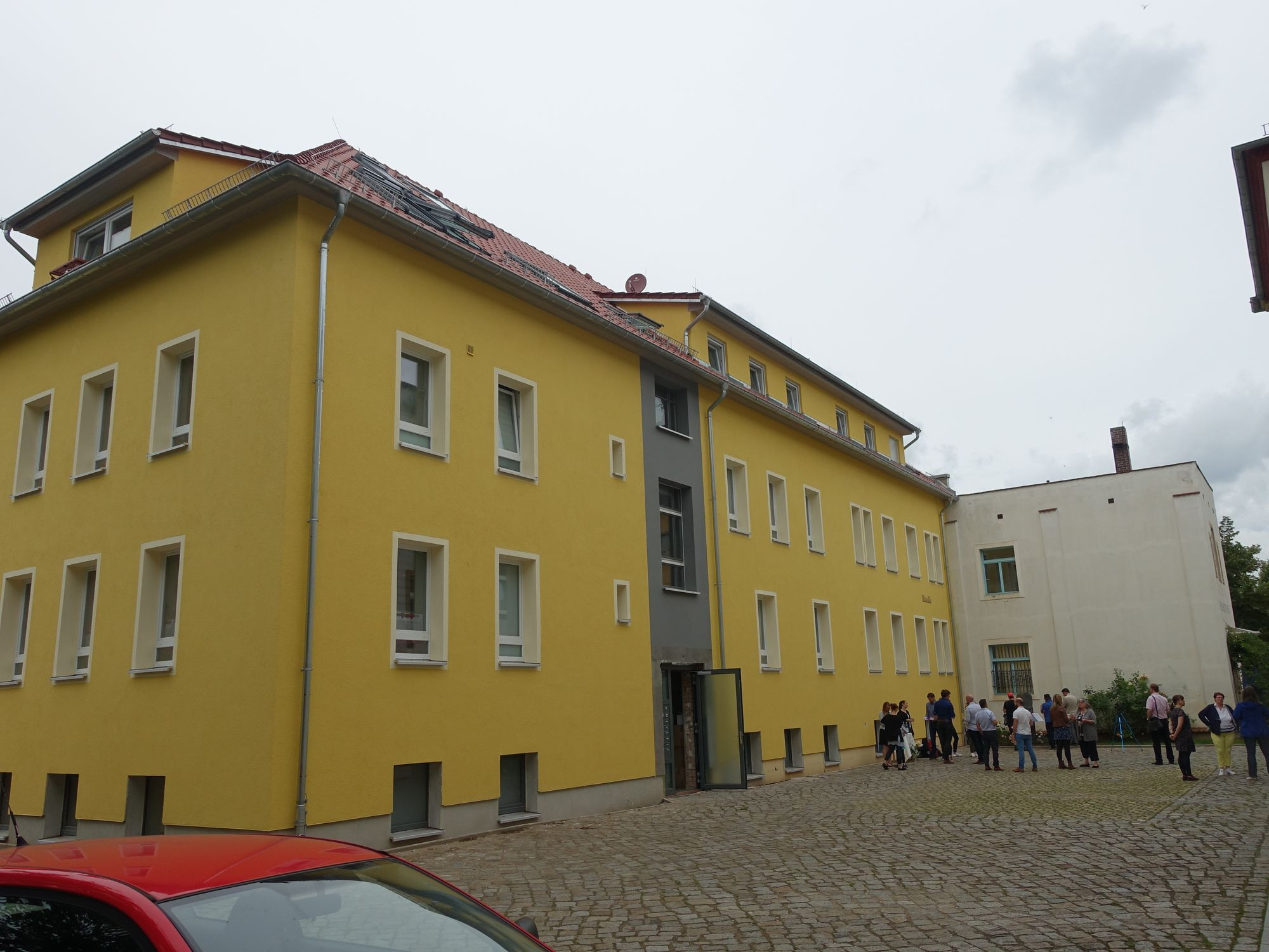 „Die Geschichte des Hauses hat uns von Anfang an bewegt“, erzählt Mathias Käubler. Er gehört zu der Baugemeinschaft „Wilma 13“, die das Haus in den letzten drei Jahren umgebaut hat. Sechs Familien – zwölf Erwachsene und zwölf Kinder – haben hier jetzt ihr neues Zuhause. Mit der Idee, an Melitta Bentz und ihre Produktionsstätte in Dresden zu erinnern, hatten sie sich an die Melitta-Zentrale in Minden gewandt und waren auf offenen Ohren gestoßen. Dann allerdings versank die Idee zeitweise im Baustaub der Baustelle.