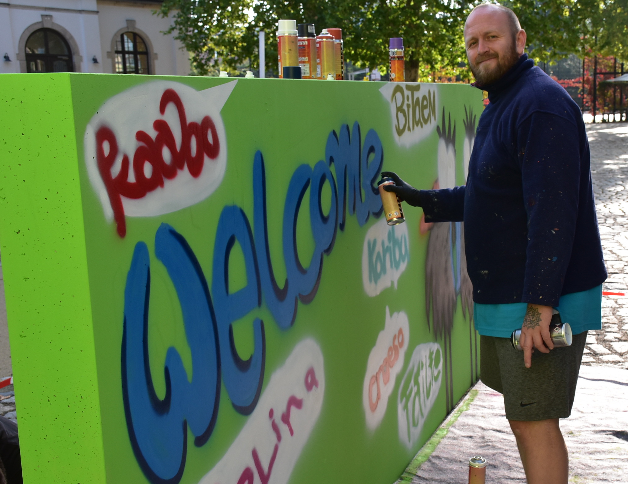 Auch Bruno war mit Begeisterung bei diesem Projekt dabei. Er hat bereits vor ein paar Jahren im Rahmen eines Graffiti-Projekts im Stadtteilzentrum Emmers erste Erfahrungen mit dem Sprühen gesammelt. „Draußen zu arbeiten, ist eine schöne Abwechslung, da kann ich mich ganz anders konzentrieren“, meint Bruno, der nach erfolgreichem Schulabschluss eine Dachdeckerlehre beginnen möchte. Die Graffiti- Wände sollen offiziell am 8. Oktober übergeben werden.