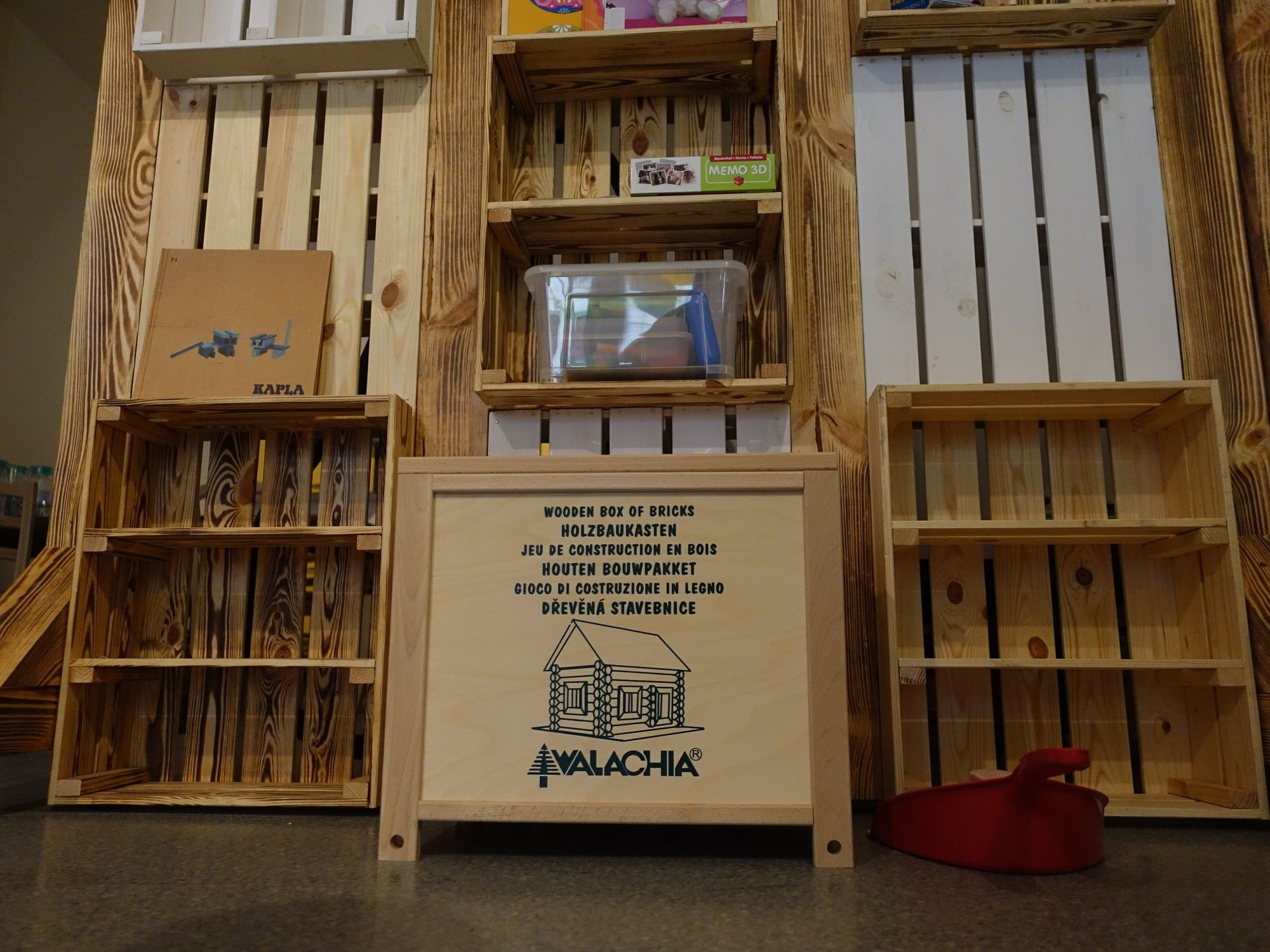 Regale und Möbel sind aus Holz – für die Kinder gibt es auch einen Holzbaukasten. Foto: W. Schenk