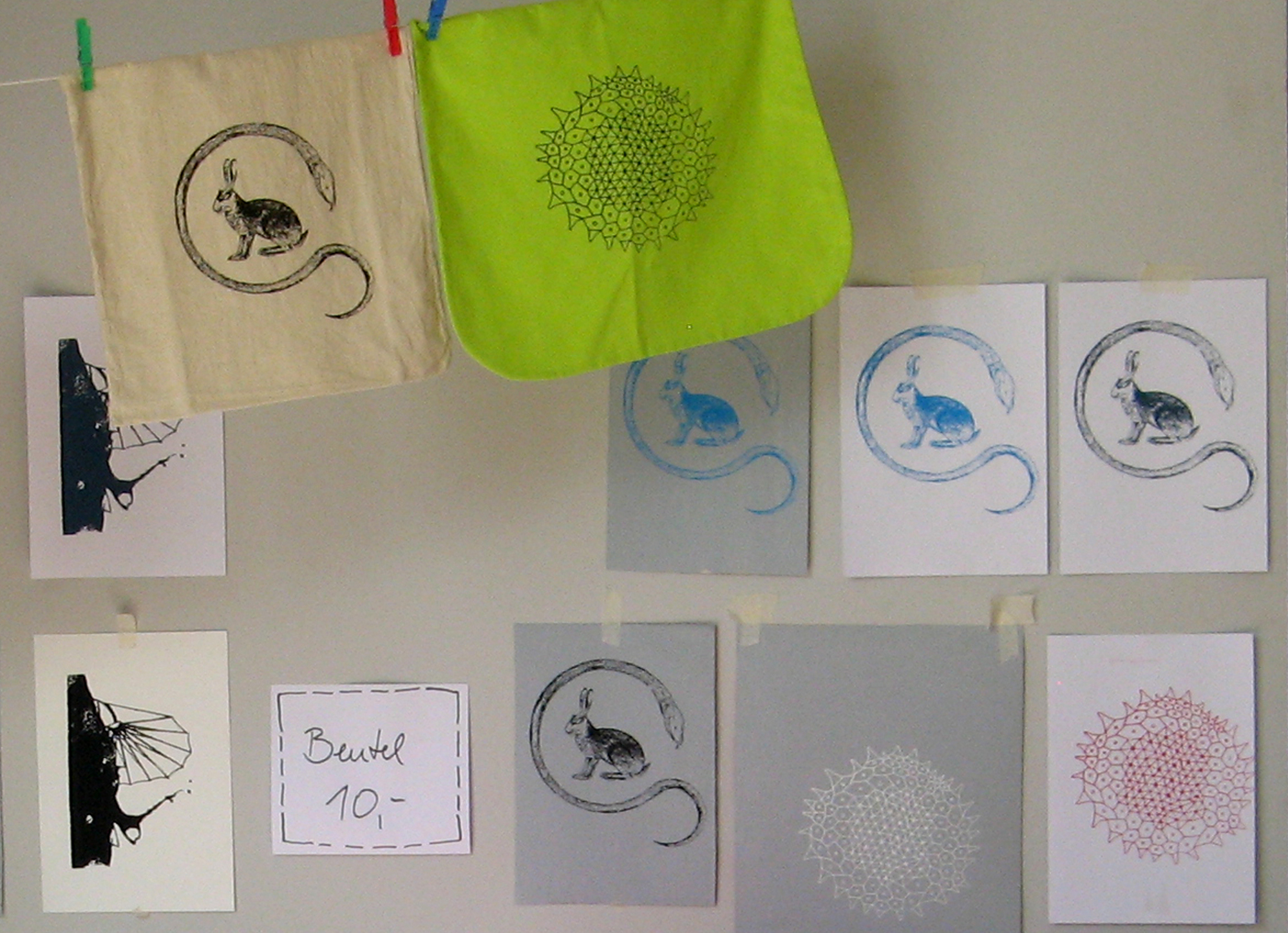 So können sich Besucher bei Michael Malerski und Alexandra Wegbahn in der Ateliergemeinschaft Trachenberge zum Beispiel mitgebrachte Textilien – Beutel oder T-Shirts – im Siebdruckverfahren bedrucken lassen. Drei verschiedene Logos haben die Künstler dafür extra vorbereitet. Man kann bereits bedruckte Beutel aber auch gern kaufen. Alle beteiligten Künstler hoffen auch darauf, dass den Besuchern das eine oder andere im Atelier gezeigte Kunstwerk gefällt und vielleicht als Weihnachtsgeschenk für einen lieben Menschen gekauft wird.