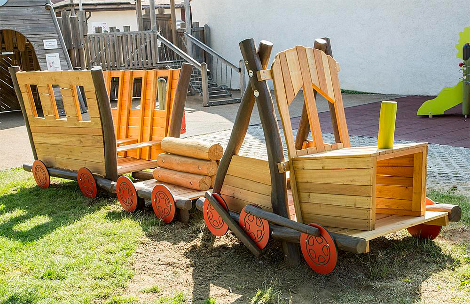 Die dreiteilige und 8 Meter lange Holzeisenbahn Cosmo soll bald auf dem Waldspielplatz aufgebaut sein. Quelle: eibe.de