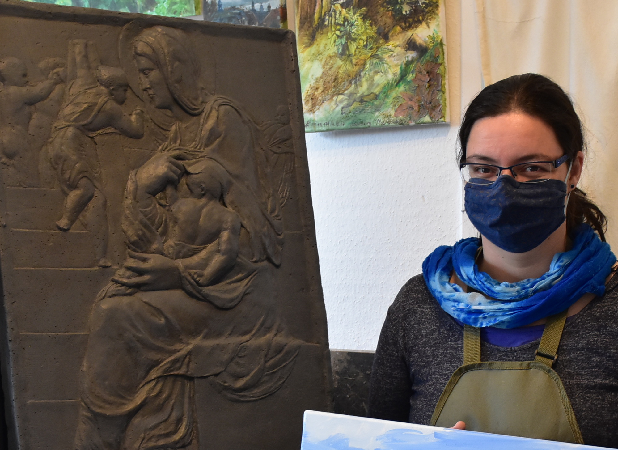 „Während ich in meiner Suhler Zeit schon viel gezeichnet habe, ist die Malerei erst durch das Studium dazugekommen“, sagt Anne Földi. „Wir haben Plein-Air-Veranstaltungen auf Hiddensee und in der Sächsischen Schweiz besucht. Das Zeichen und Malen in der Natur bringt mir immer viel Entspannung. Ich mag es, gemeinsam mit anderen zu malen.“ Bevorzugt verwendet sie Acryl und Aquarellstifte. Acrylfarben kombiniert sie oft mit anderen Materialien, um ihren Bildern ein reliefartiges Aussehen zu geben. Neben Landschaften malt die gläubige Christin auch Bilder mit religiösem Bezug. Seit ein paar Jahren ist sie Mitglied im Kunstverein Sächsische Schweiz. Gern besucht sie auch Kunst- und Handwerkermärkte in der Region, um ihre Arbeiten zu zeigen und Kontakte zu knüpfen. Dafür hat sie unter anderem kleine Reliefs aus Gips gefertigt mit verschiedenen Schlössern der Umgebung, die die Kinder auf den Märkten farbig gestalten konnten.