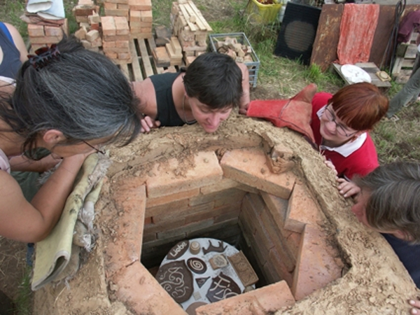 In den Öfen kann Keramik gebrannt, aber auch Brot gebacken werden. Da der Rohstoff nicht aus der Erde gegraben werden konnte, wurden Tongruben und Firmen gesucht, die mehrere Kubikmeter anlieferten. Diese wurden dann zu einem Lehmstrohgemisch in Zinkwannen gestampft und dienen als Isolation um ein Gerüst aus Feuerfeststeinen. Erste Objekte und Skulpturen entstanden aus ungebrannten Schamotteplatten, die das Schamottewerk Radeburg zur Verfügung stellte. Durch diesen Kontakt entstand die weitere Zusammenarbeit in Form der Symposien direkt im Schamottewerk.