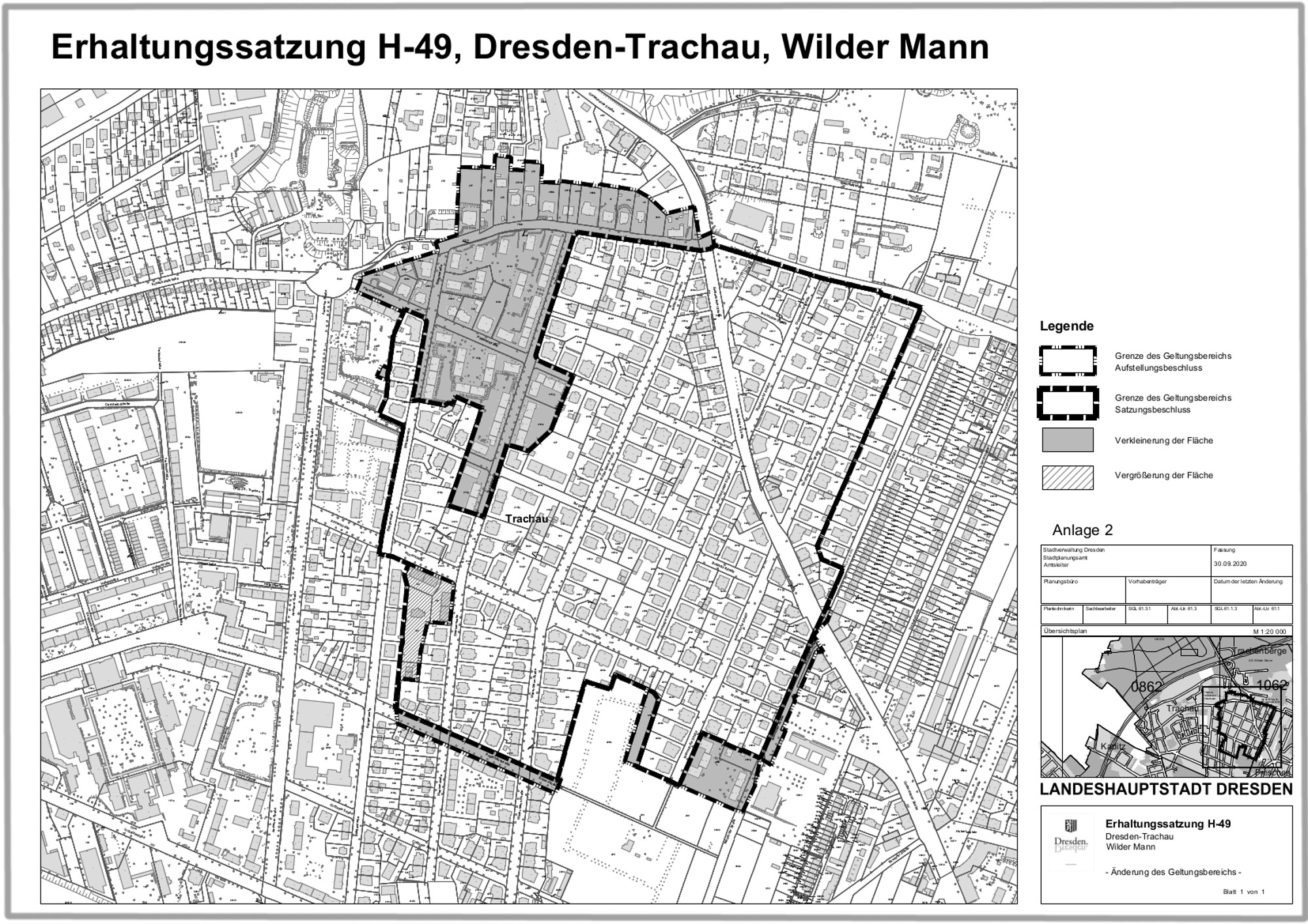 Inzwischen haben die Experten im Stadtplanungsamt das Areal ausführlich untersucht und ihre Ergebnisse in dem Satzungs-Entwurf festgehalten. Das ursprünglich geplante Geltungsgebiet wurde noch einmal verkleinert. Grund ist, dass einige Bereiche bereits geschützt sind. „Der Siedlungsbau der 1920er Jahre zwischen Aachener Straße und Stephanstraße steht denkmalrechtlich als Sachgesamtheit „Gartenheimsiedlung Trachau“ bzw. „Gartenheimsiedlung Trachau II“ unter Schutz; im Bereich Aachener Straße, Platanenstraße,