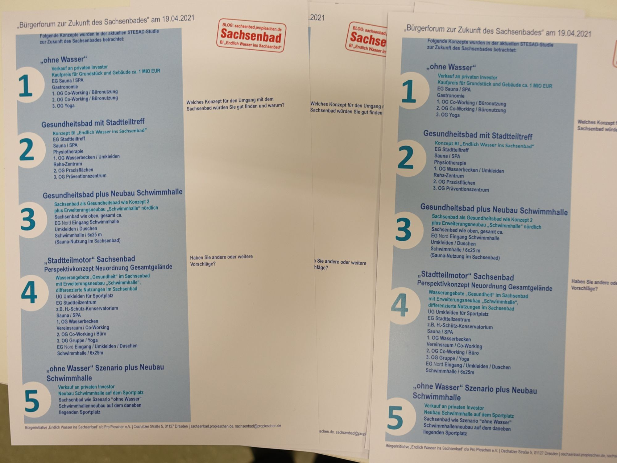 Andreas Tietze, der mit seinem Team von der Aktion Zivilcourage e.V. für die Moderation der Diskussionen sorgte, konstatierte dann nach 90 Minuten Debatte in den drei Runden, dass das Fazit sehr ähnlich sei. Weil das Schwimmangebot für alle enorm hoch bewertet wird, lief es letztlich auf das Szenario 3 hinaus: Sanierung des Sachsenbades als Gesundheitsbad. Dafür hatte die Bürgerinitiative ein umfassendes Konzept erarbeitet. Und der Neubau einer Schwimmhalle so schnell wie möglich.