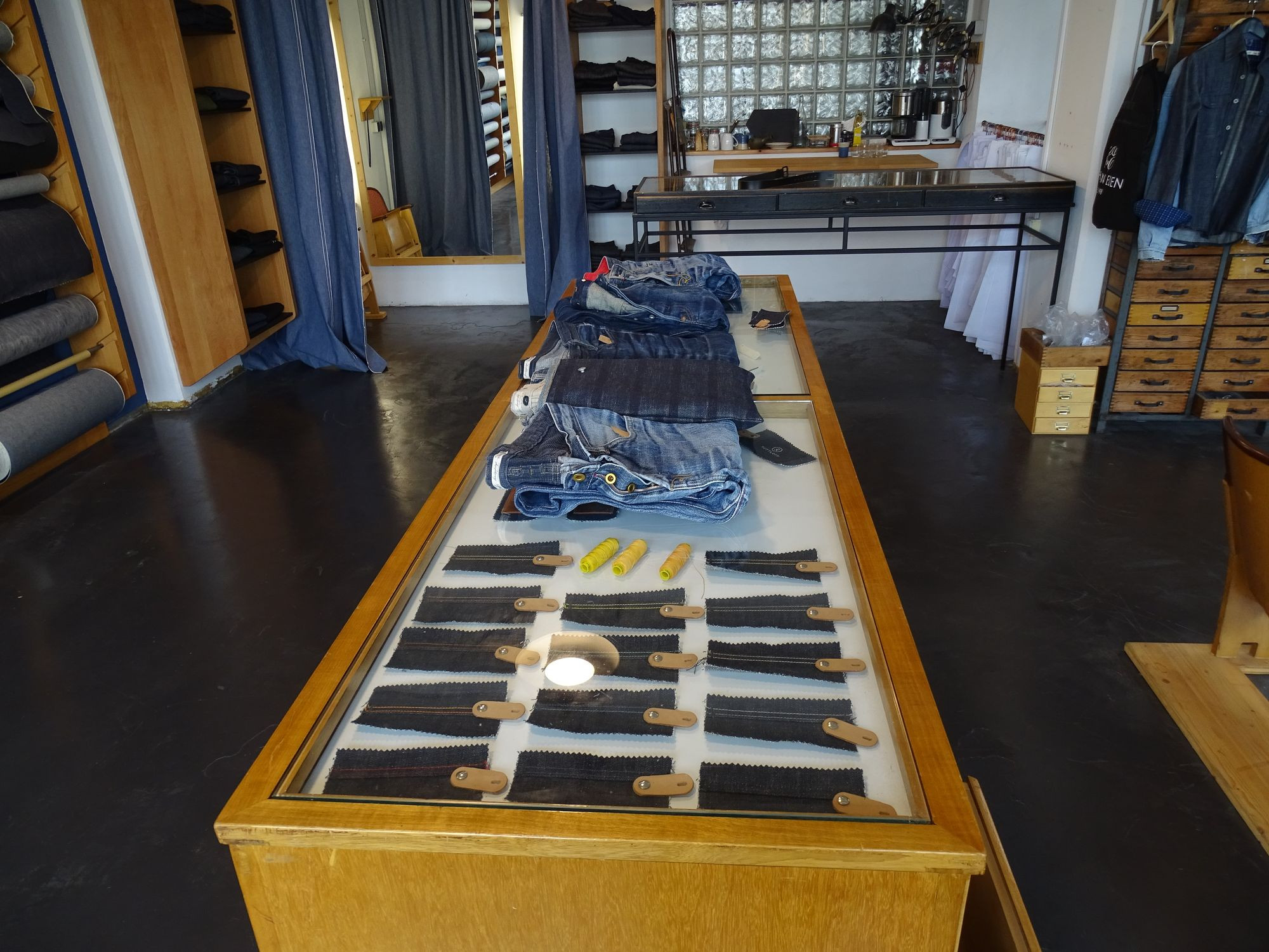 mit der Zeit als Durchdruck auf der Außenseite erkennbar. Das veranschaulicht einen Grundsatz Johanns: Seine Jeans sollen nicht nur aus hochwertigem Material fachkundig hergestellt sein und gut passen, sondern sich mit der Zeit entwickeln. Auch Sonderwünsche werden mit spielerischer Leichtigkeit integriert: So erzählt Johann, dass einige Jeansmodelle für den Abnehmer in Shanghai in Anlehnung an die Nationalfarben Chinas extra eine rote Naht erhielten. Seine Stoffe bezieht Johann alle aus Japan.