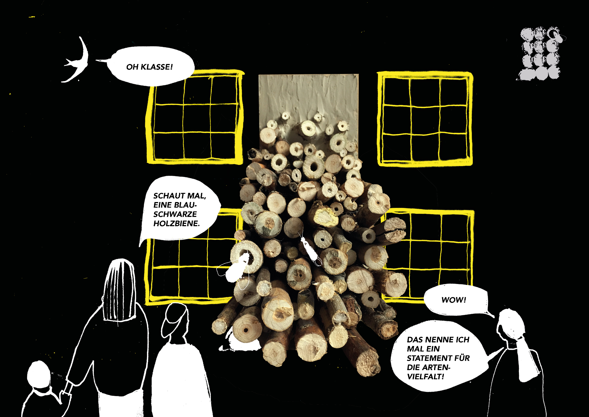 Wer bei einem Insektenhotel an fliegengroße Federbetten oder eine kleine Karawane rollkofferbestückte Hummeln denkt, liegt zwar etwas, aber nicht völlig daneben. Ein Insektenhotel ist nichts anderes als eine Nisthilfe für die kleinen Krabbel- und Flugtierchen. Da besonders Wildbienen in urbanen Räumen häufig kein Zuhause mehr finden, leidet darunter die Biodiversität und die gesamte Leistungsfähigkeit eines Ökosystems, erzählt Michael Merkel, der Programmkoordinator der Geh8.