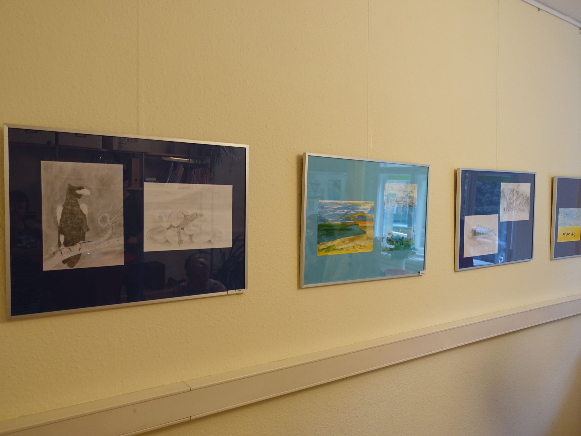 „Es war schön zu sehen, dass die Malgruppe die Coronazeit überstanden hat“, freute sich Maxi Luise Kabella, Sozialarbeiterin in der Begegnungsstätte. Das über mehrere Wochen unter Corona-Bedingungen einzeln, aber doch gemeinsam gemalte Bild zeige, dass sich die Malgruppe über die Zeit zu einem festen Kreis entwickelt habe. Unter der Anleitung von Doris Okeke – sie ist von Anfang an dabei – können die Teilnehmerinnen und Teilnehmer auch verschiedene Maltechniken erlernen. Acrylfarbe, Buntstifte, Kreide sind in der Begegnungsstätte vorhanden, Zeichenpapier müssen die Malzirkel-Teilnehmer mitbringen. Vor zwei Jahren hatte es schon einmal eine Ausstellung mit Bildern der Malgruppe gegeben. Dieses Mal sind Bilder von vier Malgruppe-Mitglieder und von Doris Okeke zu sehen – Bleistiftzeichnungen, Aquarelle und Bilder in Acryl. Maxi Luise Kabella machte allen Interessierten Mut und lud sie ein, sich in der Malgruppe einmal auszuprobieren (jeden Freitag von 10 bis 12 Uhr) oder andere Angebote der Begegnungsstätte zu nutzen.