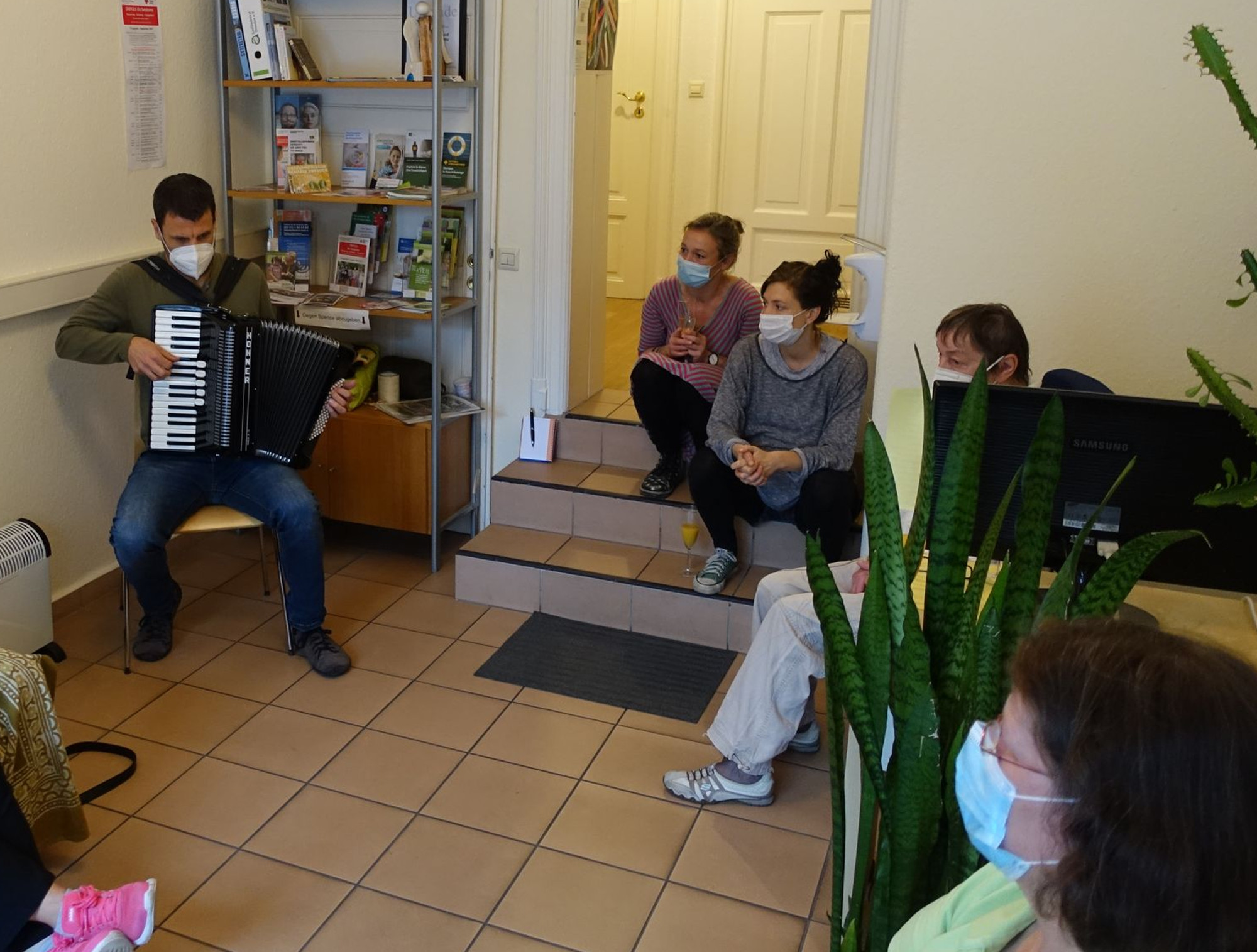 Auch Stefan Krause war der Einladung in die Begegnungsstätte gefolgt. Er arbeitet sonst im DRK-Begegnungszentrum „Johann“ am Fetscherplatz, hatte sein Akkordeon mitgebracht und sorgte mit abwechslungsreichen Musikstücken für eine schöne Stimmung bei der Ausstellungseröffnung.