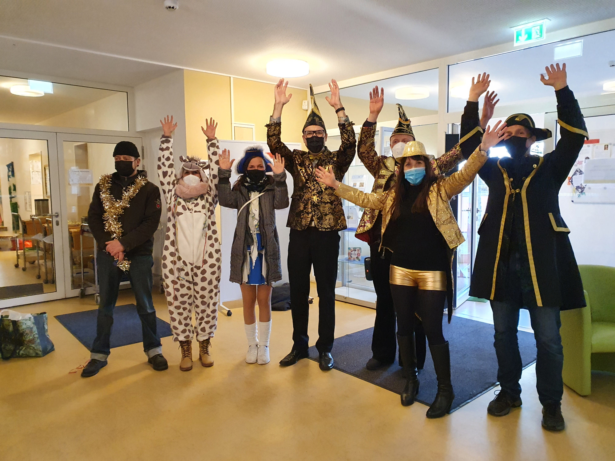 Alles coronakonform. Geimpft oder genesen. Die Jecken vom Verein Pieschener Kneipenkarneval kennen die Regeln. „Trotz der ganzen Aufregung im Politischen wie im Pandemischen soll es auch in diesem Jahr eine Erstürmung des Rathauses geben“, hatte Oberjecke Lutz Herrmann angekündigt. Pünktlich um 11.11 Uhr stürmten sie die Rathaustür und wurden von Christian Wintrich, Leiter des Stadtbezirksamtes Pieschen und Hausherr im Rathaus, freundlich empfangen. Er hatte nicht nur den goldenen Schlüssel dabei, sondern auch viel Arbeit. „Das Rathaus ist Baustelle, es wird saniert. Es gibt also viel zu tun bis zum Februar“, rief er seinen Gästen zu. „Wir werden das schon versauen“, kam auch prompt die Antwort.