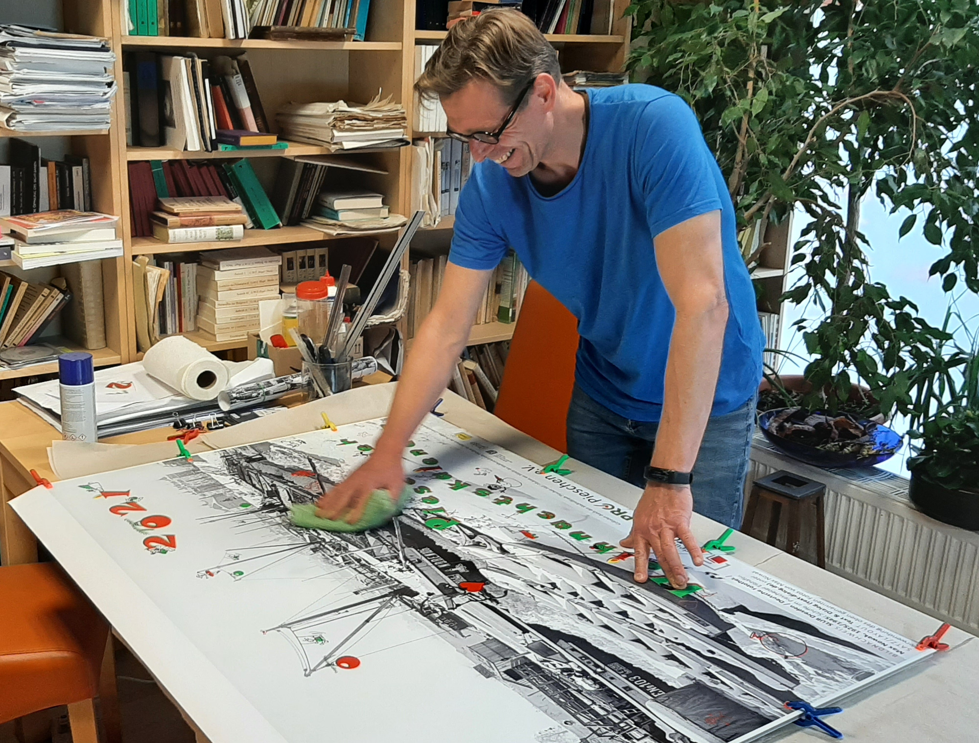 Extra für die Kinder hat René Kaufmann hier und da kleine lustige Ergänzungen in das Foto eingearbeitet. So gibt es auch neben den täglich neuen Kinderzeichnungen noch etwas auf dem Kalender zu entdecken. Während auf der Innenseite des Kalenders Tag für Tag weniger von der historischen Hafenansicht zu sehen sein wird, bleibt die Gesamtansicht von außen im Schaufenster bis zum Schluss erhalten.
