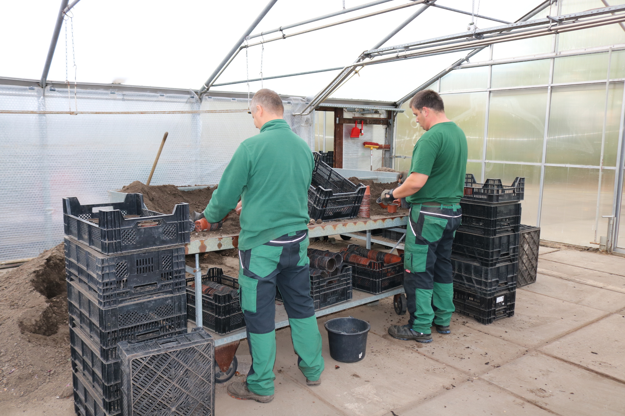 Mehr als 38.500 Blumenzwiebeln werden in diesen Tagen in der Gärtnerei für ihren Auftritt im Frühjahr vorbereitet. Sie finden in Mischungen mit anderen Frühlingsblühern wie Veilchen, Tausendschönchen und Vergissmeinnicht in Pflanzgefäßen Verwendung. Hierfür wurden die Zwiebeln zunächst gewässert und dann in Töpfe gepflanzt.