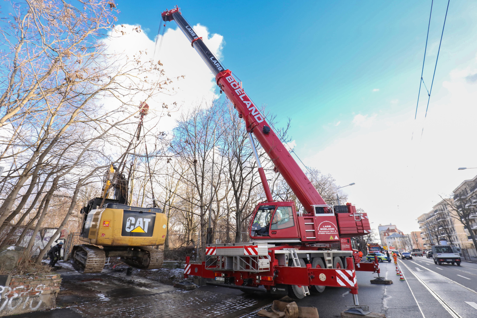Nach dem eines Kettenbaggers in der Leipziger Straße haben die Staatsanwaltschaft Dresden und die PTAZ (Polizeiliches Terrorismus- und Extremismus- Abwehrzentrum) des Landeskriminalamtes Sachsen die weiteren Ermittlungen übernommen. Grund ist der Umstand, dass eine politische Motivation für die Tat nicht ausgeschlossen werden kann. Das Grundstück, auf dem der Bagger brannte, befindet sich an der Haltestelle Alter Schlachthof in stadtauswärtiger Richtung. In unmittelbarer Nähe baut USD Immobilien seit mehreren Jahren die Hafencity. Mit einem Zeugenaufruf haben sich die Ermittler an die Öffentlichkeit gewandt und um Hinweise gebeten.