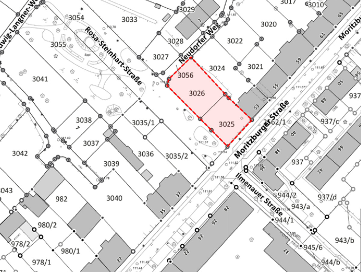 Das Areal, bestehend aus den Flurstücken 3025 und 3026, hatte Anfang 2021 den Eigentümer gewechselt. Es war Bestandteil eines Einlagenpaketes von 7 Grundstücken, die an die WiD übertragen wurden. Aufgabe der städtischen Gesellschaft ist die Schaffung von mietpreisgebundenem Wohnraum, der verteilt über das gesamte Stadtgebiet zur Verfügung gestellt werden soll.