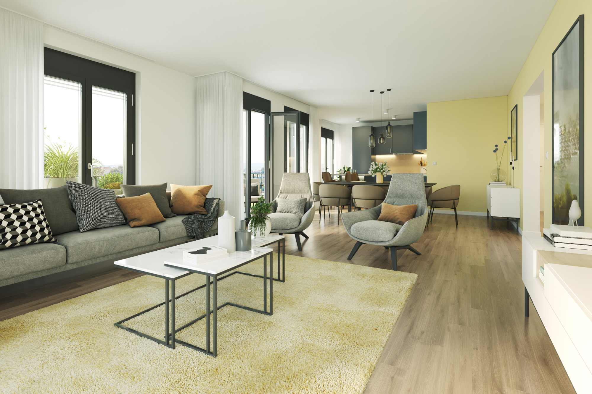 Wohnbeispiel für eine der ersten 190 Wohnungen. Visualisierung: Archlab Dresden