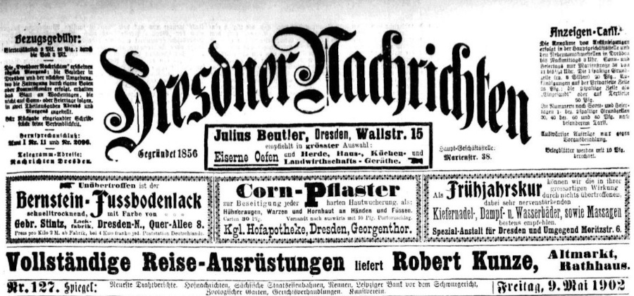 Dresdner Nachrichten vom 9. Mai 1902.