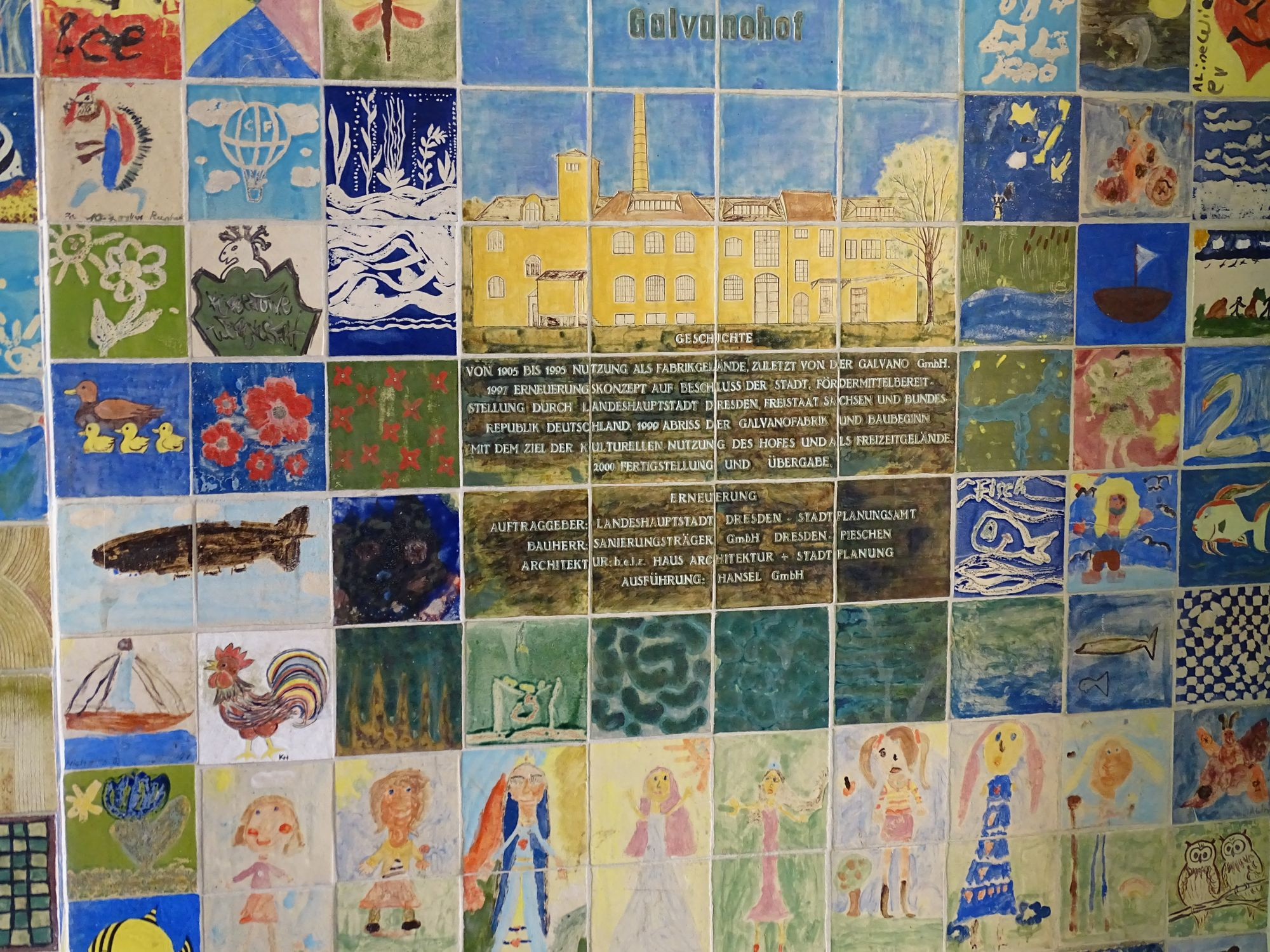 Wer den Galvanohof besuchen möchte, stößt schon im Torbogen der Bürgerstraße 50 auf eine erste Überraschung. Eine Fliesenstraße mit 1.597 bunten und individuell gestalteten Keramikfliesen zeugt von der wundersamen Wandlung des ehemaligen Werksgeländes im Innenhof. Von 2005 bis 2007 hatten mehr als eintausend Anwohner, Vereine und Unternehmen in einer Mitmachaktion die Fliesen entworfen. Sie wurden dann in der Kreativen Werkstatt gebrannt. Der Verein wurde dabei mit Mitteln aus dem EFRE-Fonds unterstützt. Er ist seit 1995 der neue Dreh- und Angelpunkt auf dem Areal. „Die alte Galvanik-Fabrik musste abgerissen werden. Die Mauern waren mit Chrom, Nickel, Zink und Cyanid stark belastet, in den Räumen roch es nach Benzol und Holzschutzmitteln“, erinnerte sich Thomas Pieper. Der Abriss sei unvermeidbar gewesen und erfolgte unter erheblichen Schutzmaßnahmen. Um die Jahrtausendwende seien dann die Räume für die Kreative Werkstatt – unter anderem eine ehemalige Schlosserei – rekonstruiert worden. 220.000 Euro an Fördermitteln flossen in die Sanierung.