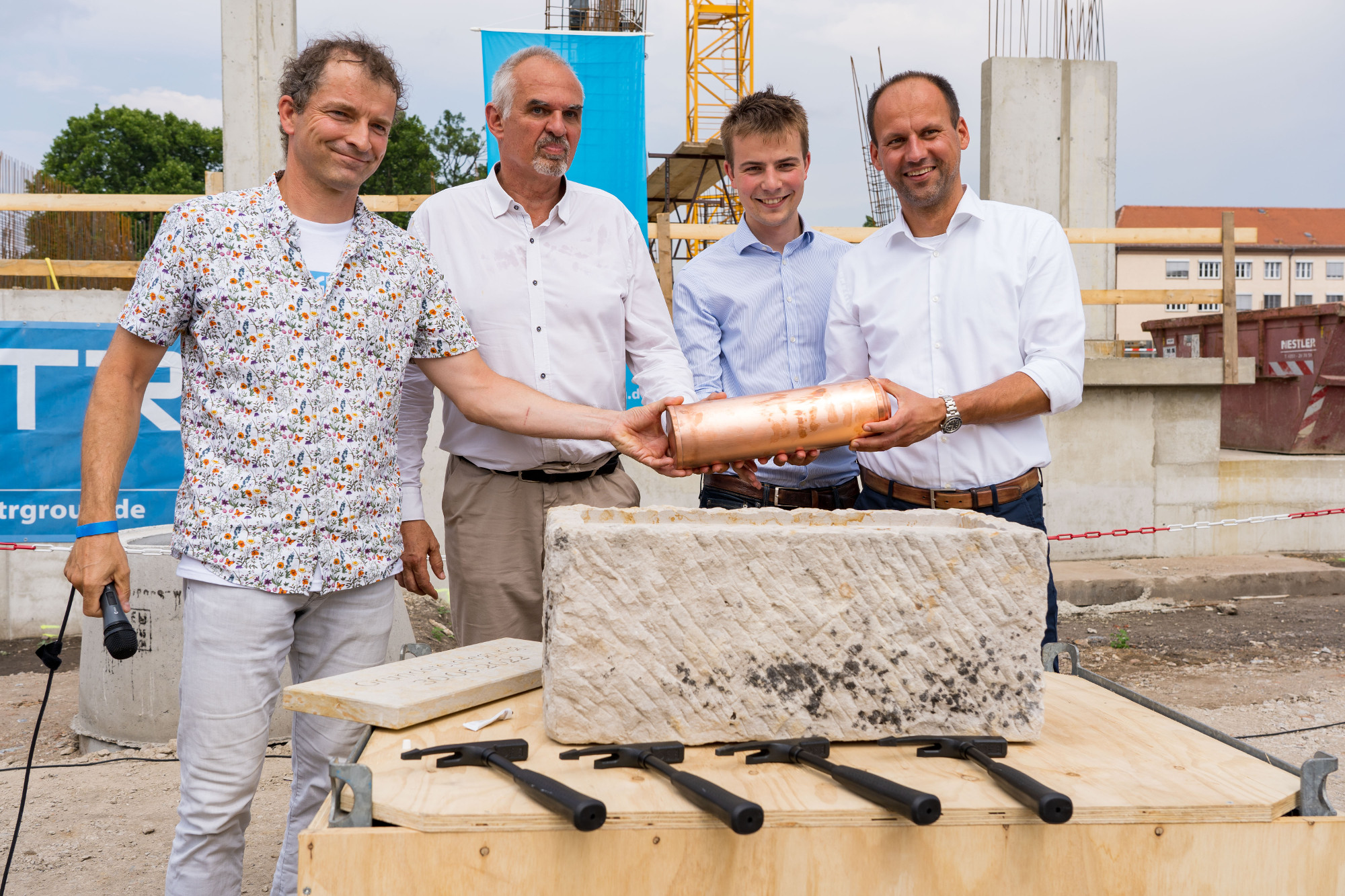 Legten den Grundstein: Steffen Herzer, Dreßler Bau, Petr Albl, CTR Projektleiter Deutschland, Rudolf Heidu, CTR Projektleiter, Jan Horvath, CTR Prokurist (v.l.n.r.). Foto: pr