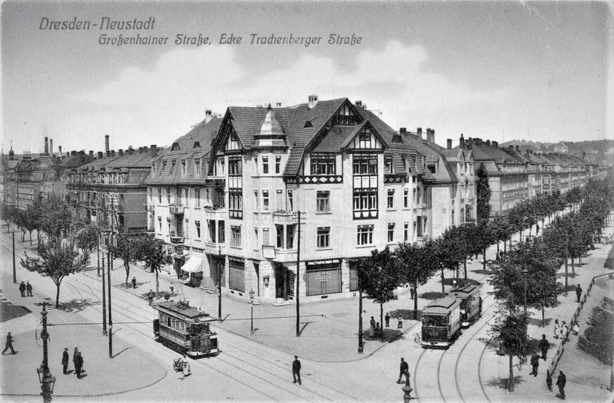 Weil die Arbeiten am Unterbau auf der Großenhainer Straße zwischen heutigem Trachenberger Platz und Endpunkt Wilder Mann nicht vollständig abgeschlossen waren, kam auf dieser Strecke bis zum 24. August 1900 noch die Pferdebahn zum Einsatz.