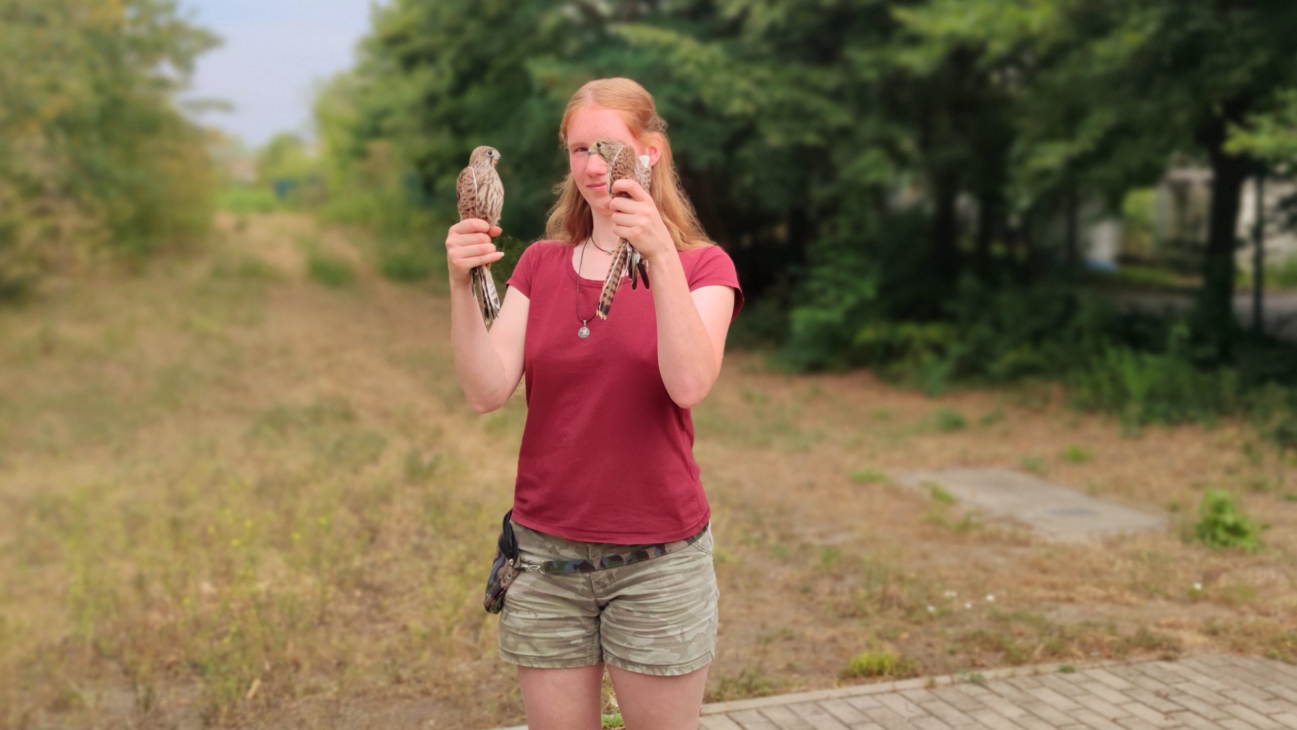 Ronja Fulsche mit zwei Turmfalken kurz vor der Auswilderung - Foto: Maren Kaster
