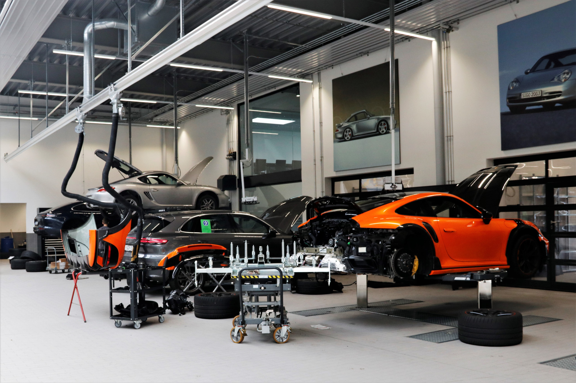 Das Grundstück misst ca. 17 000 Quadratmeter. Insgesamt wurden 1.500 Kubikmeter Beton, 130 Tonnen Stahl und 775 Quadratmeter Verglasung für den Neubau benötigt, der innerhalb von 15 Monaten errichtet wurde. Der Parkplatz bietet Stellflächen für 100 Fahrzeuge und wurde mit vier Ladesäulen für die Porsche E-Hybrid-Modelle bzw. den vollelektrischen Porsche Taycan ausgestattet.