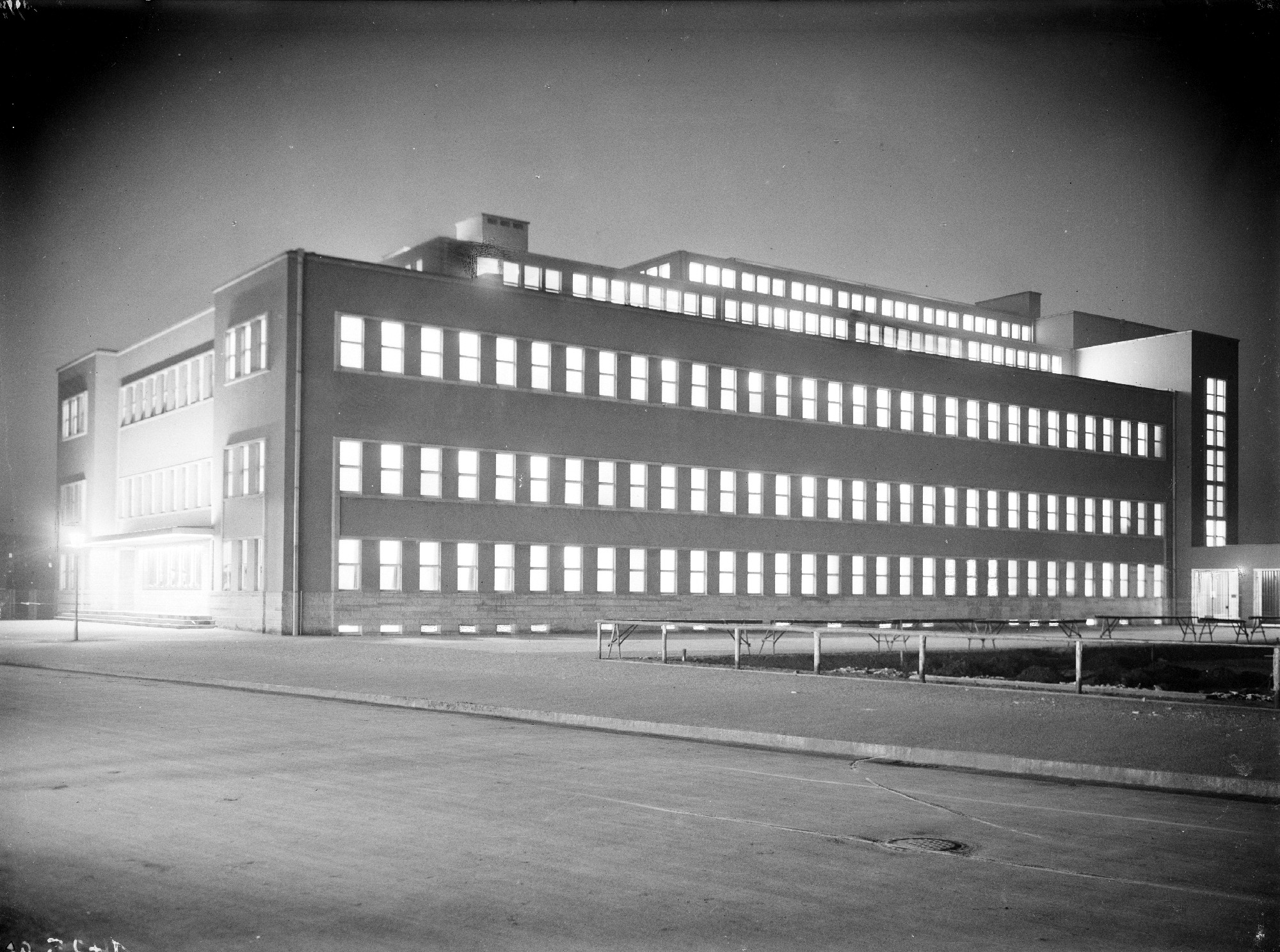 Nächtlich beleuchtetes Sachsenbad, 20.12.1929. Quelle: Stadtarchiv Dresden, 6.4.40 Stadtplanungsamt Bildstelle, Nr. II7248, unbekannter Fotograf, 1929