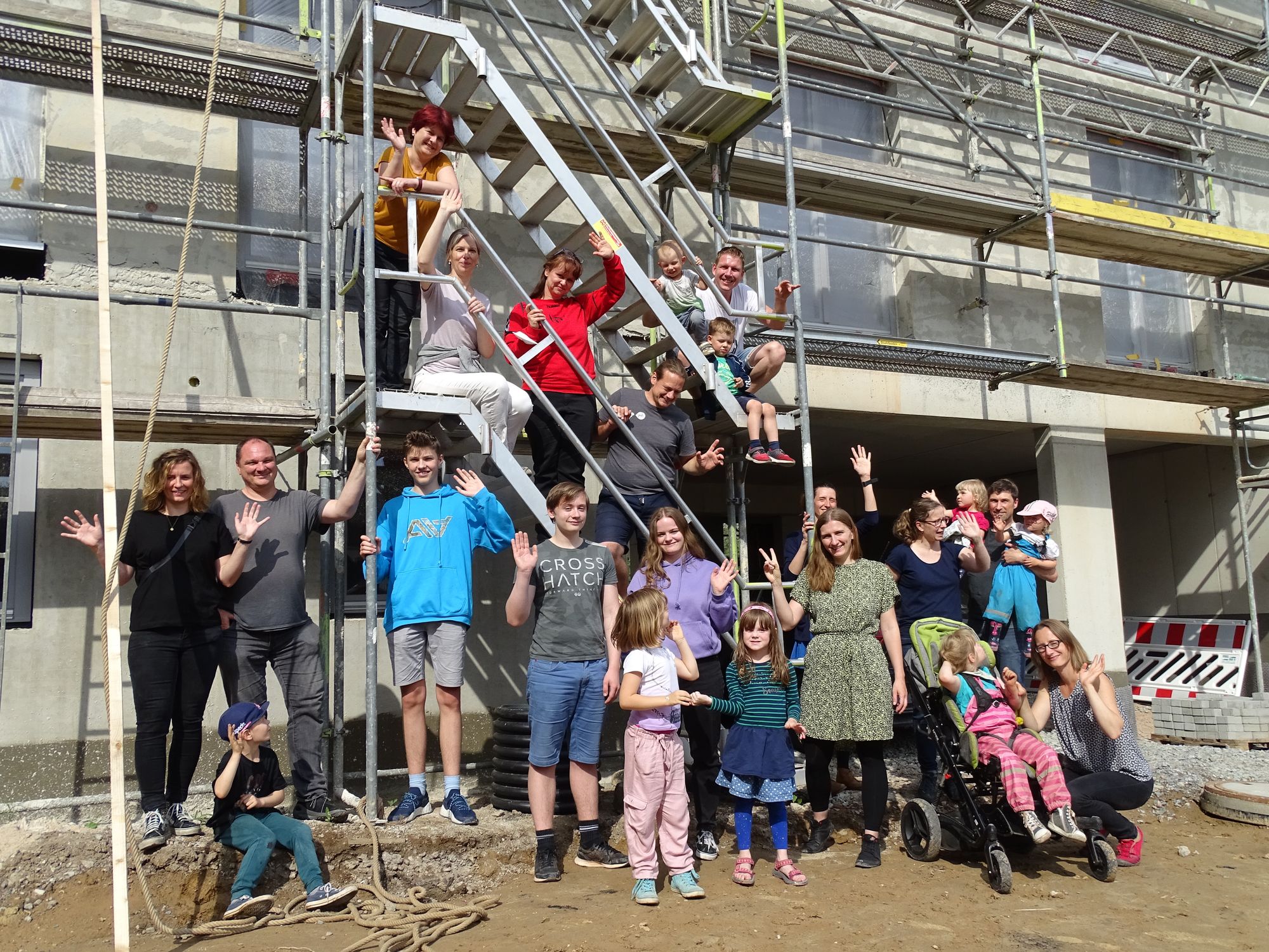 17 Erwachsene und 15 Kinder haben in dem Mehrfamilienhaus zehn Wohnungen bezogen. Die Eigentümergemeinschaft hat dem Projekt bei ihrer Gründung im Jahr 2018 – damals noch als Baugemeinschaft – den Namen „Rosa Melodie“ gegeben. Im Sommer 2020 begannen die Bauarbeiten auf dem ehemals wilden Parkplatz, ein Jahr später wurde bereits Richtfest gefeiert.