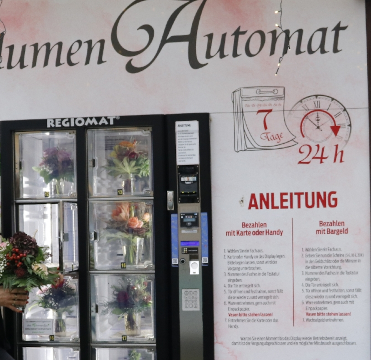 Damit die Blumen sommers wie winters lange Freude bringen, ist der Automat konstant auf 8 Grad Celsius temperiert. Er wird momentan also geheizt und im Sommer dann gekühlt. Dass so die Qualität der Sträuße gesichert ist und nicht hinter der Güte der Blumen im Pavillon zurück bleibt, ist Claudia Rentzsch besonders wichtig und ein großer Vorteil gegenüber dem Blumenkauf an der Tankstelle.