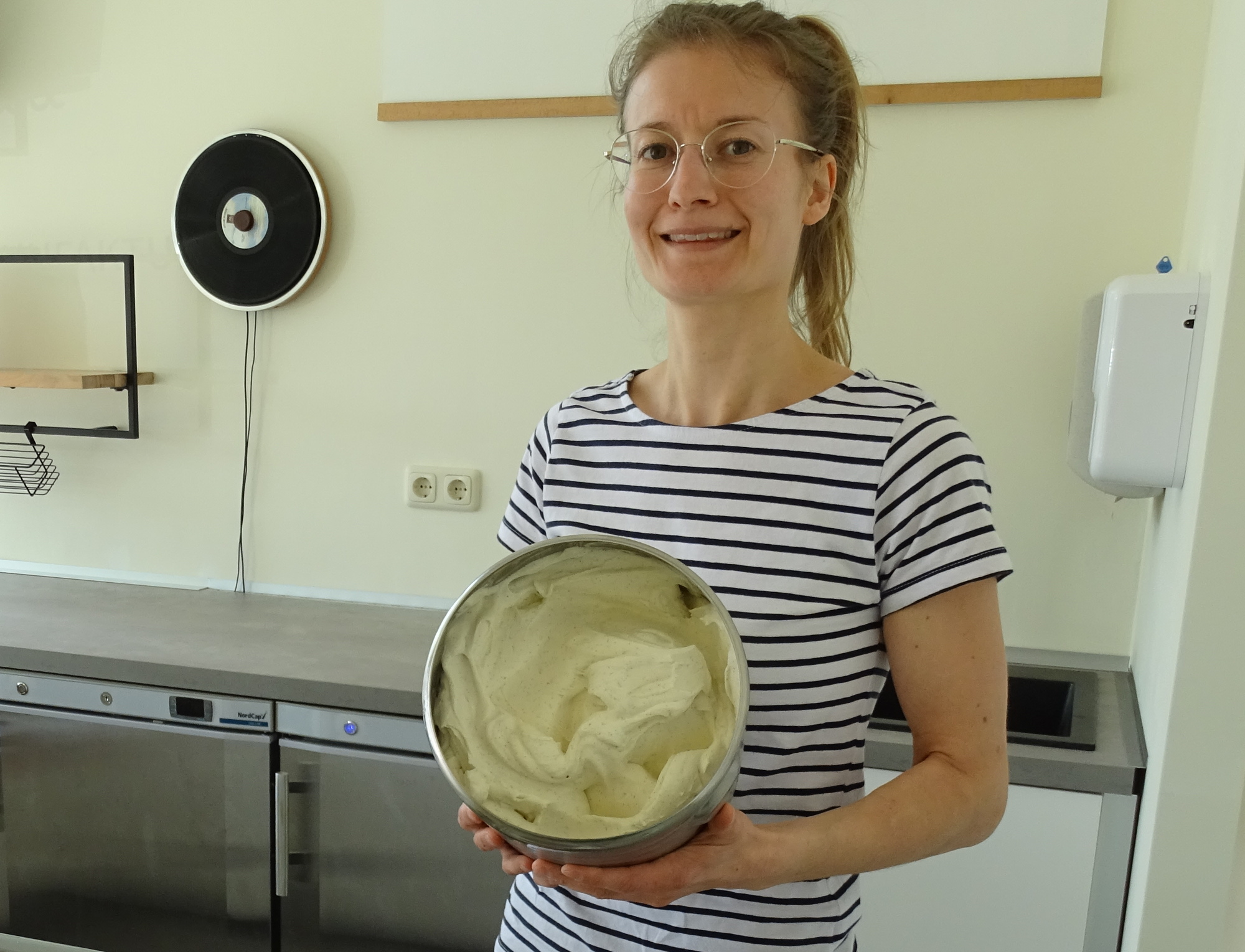 Die Preise der anderen Eisanbieter in der Umgebung hat sie sich angeschaut. „Mit 1,60 Euro pro Kugel bewege ich mich etwa in der Mitte der Preisspanne. Bei aufwändigerer Herstellung kann der Preis auch mal etwas höher liegen“, sagt sie. Für ihr Vanilleeis verwendet sie 100 Prozent Vanille aus der Schote. Das erkenne man an den kleinen schwarzen Punkten im Eis. Und es ist nicht gelb.