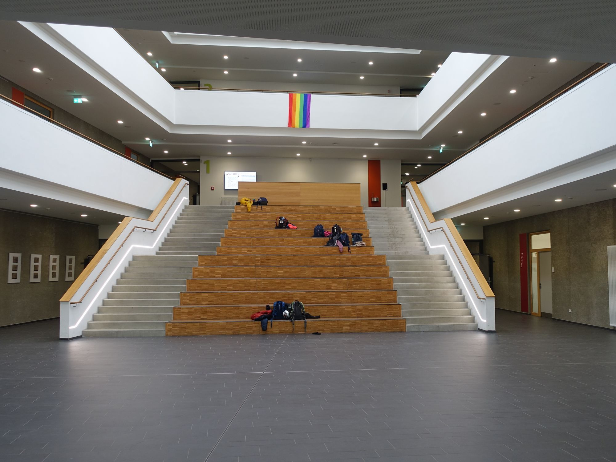 Die Pride Flag prangt stolz und kompromisslos über der Eingangshalle des Gymnasiums. Beim Eintreten wird deutlich, es ist nicht nur eine Schule die sich gegen Hass und Diskrimierung einsetzt. Es ist eine beeindruckende Generation an jungen Menschen, die kämpft für eine gerechte und inklusive Gesellschaft. „Wir wollten bei uns nicht nur Rassismus thematisieren. Sondern auch andere Formen der Diskriminierung, wie Antisemitismus, Queerfeindlichkeit und Ableismus.“, so eine Schülerin. Antirassismus, der andere Minderheiten ausschließt, widerspricht seinem eigentlichen Ziel der Gleichberechtigung für alle.