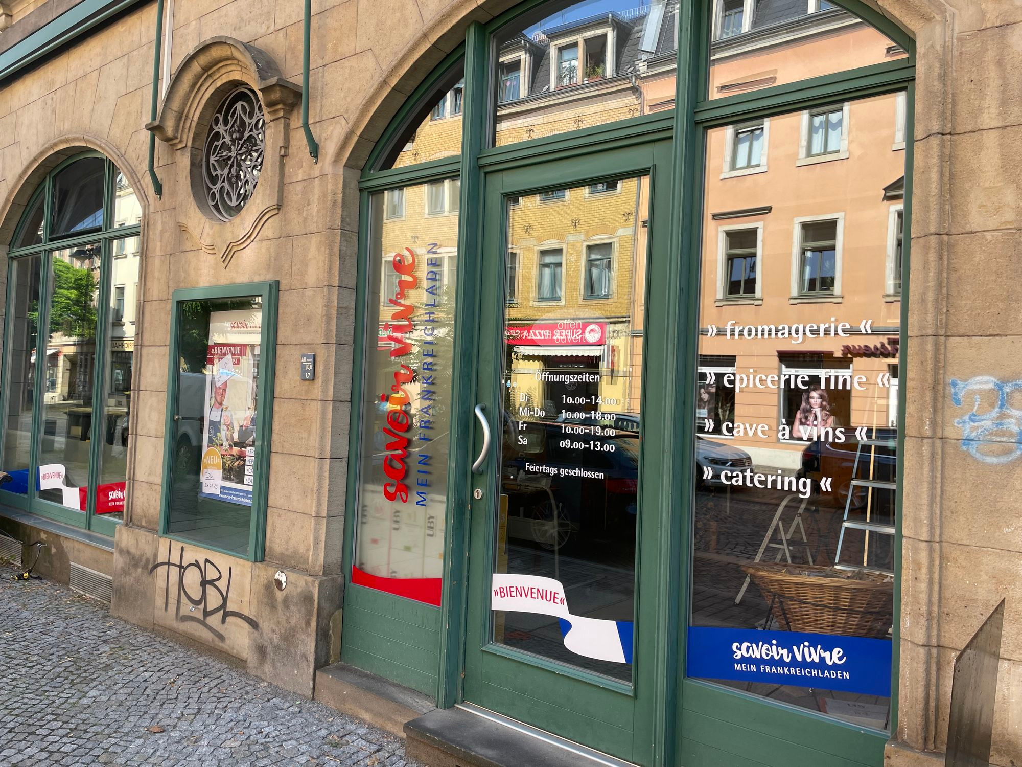 Am Dienstag starten Uwe Sochor und Jean Philippe Nauwelaers mit einer Testwoche ihr neues Geschäft in der Oschatzer Straße. Ab 11 Uhr können Neugierige vorbeischauen. Der Name „Savoir vivre. Mein Frankreichladen“ ist geblieben. Im Mittelpunkt stehen jetzt fromagerie, epicerie fine, cave à vine und catering. So steht es an der neu gestalteten Eingangstür. Uwe Sochor erläutert, was sich dahinter verbirgt. „Wir haben unser Angebot an französischen Käsespezialitäten mit einer schönen und qualifizierten Auswahl ausgebaut, in einer kleinen Sitzecke können die Gäste Kaffee, Espresso oder ein Glas Wein mit einem Croissant oder einem Baguette genießen“, erzählt Sochor.