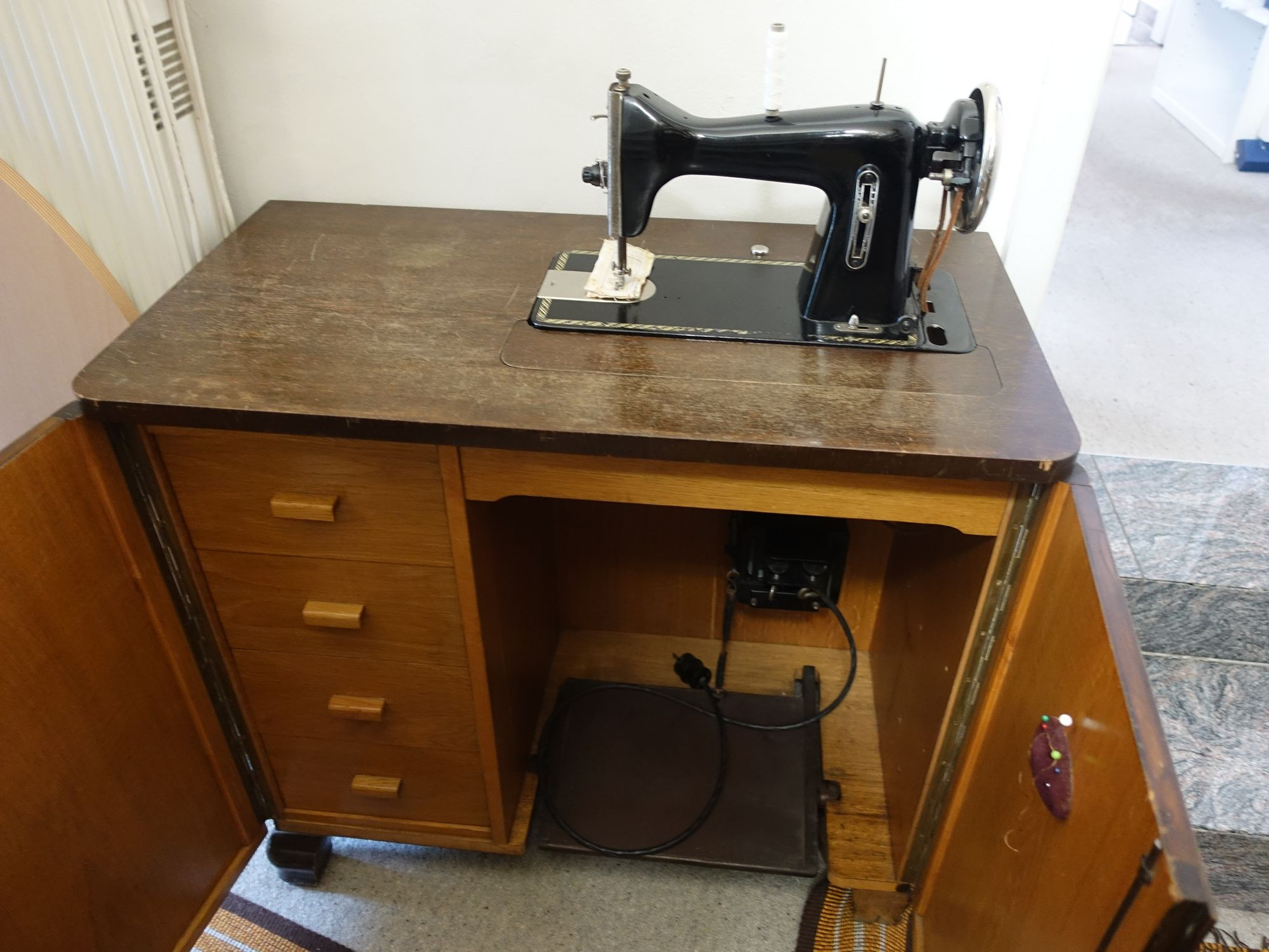 Auch eine voll funktionsfähige Schrank-Nähmaschine mit elektrischem Antrieb steht im Geschäft. Darauf, so meint Talkenberg, habe seine Frau bis zuletzt genäht. Am Ende würde er die gut erhaltenen Möbel auch verschenken, um die Entsorgungskosten zu sparen. Bis Mitte April soll der Ausverkauf noch fortgesetzt werden, sind sich Hennl und Talkenberg einig.